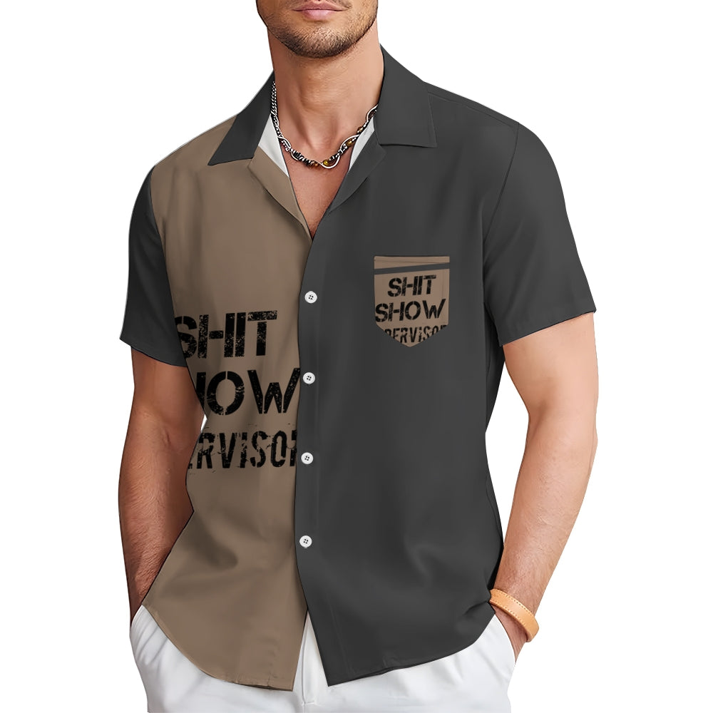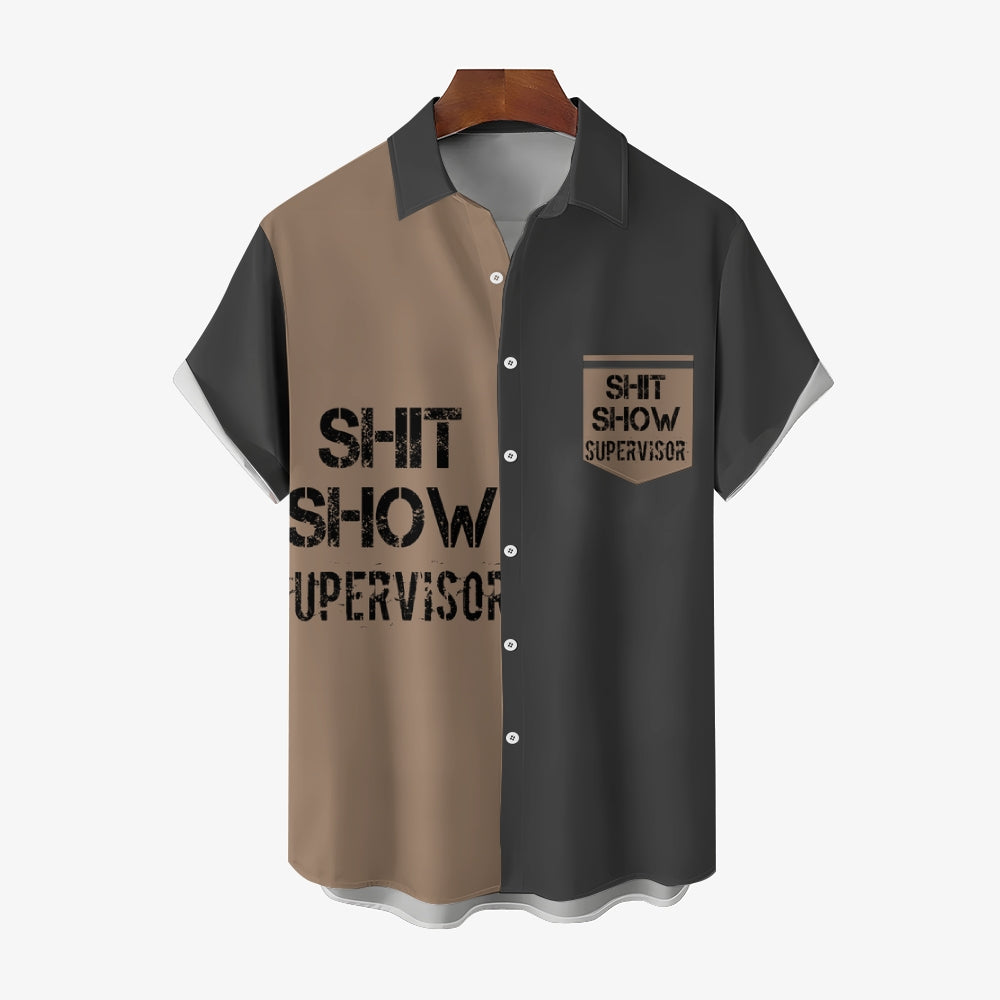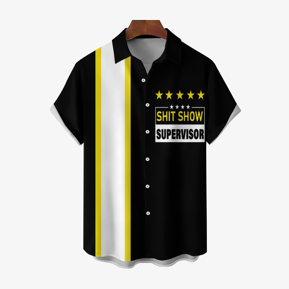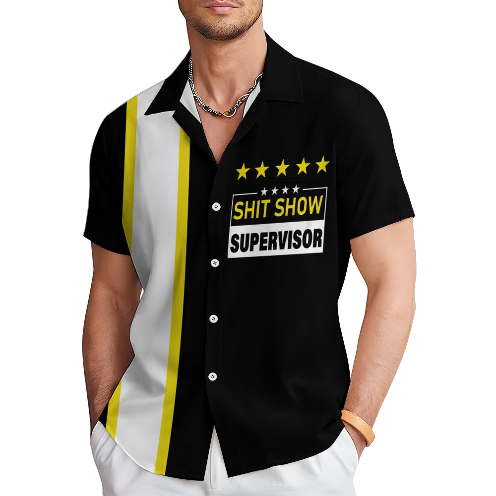 Vintage Bowling Mens "Shit Show Supervisor" Printed Casual Short Sleeve Shirt 2401000371