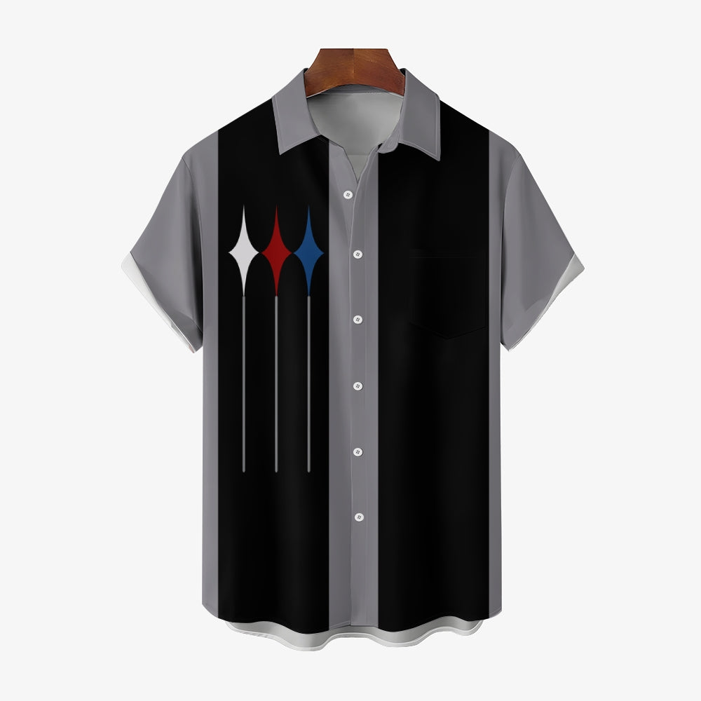 Men's Retro 50s Style Black Gray Classic Bowling Shirt Short Sleeve Shirt 2307100641