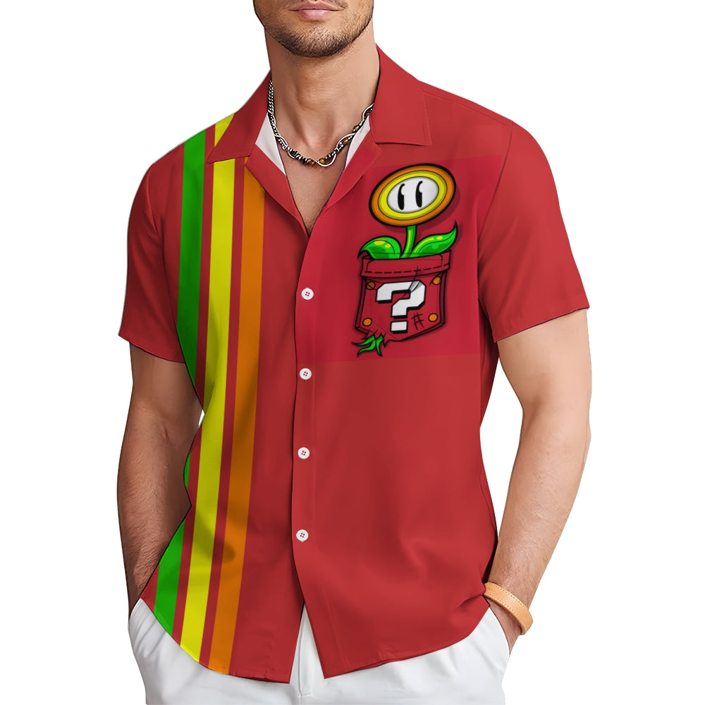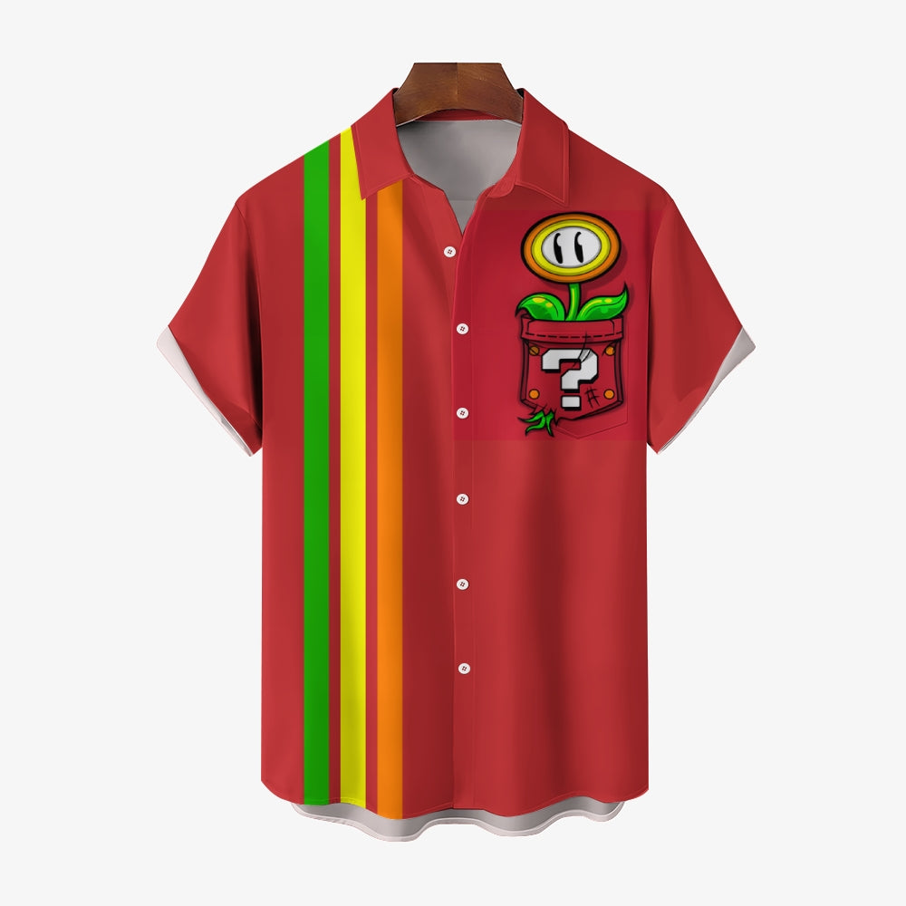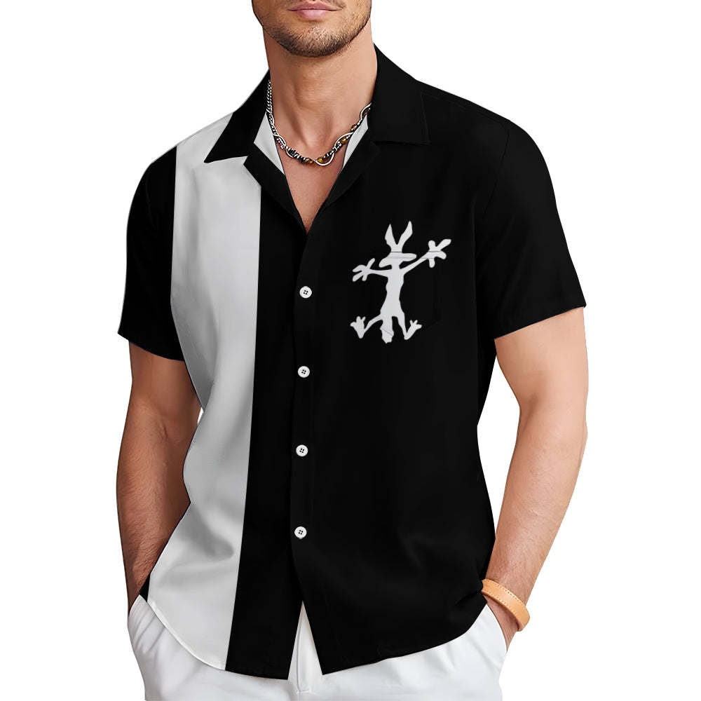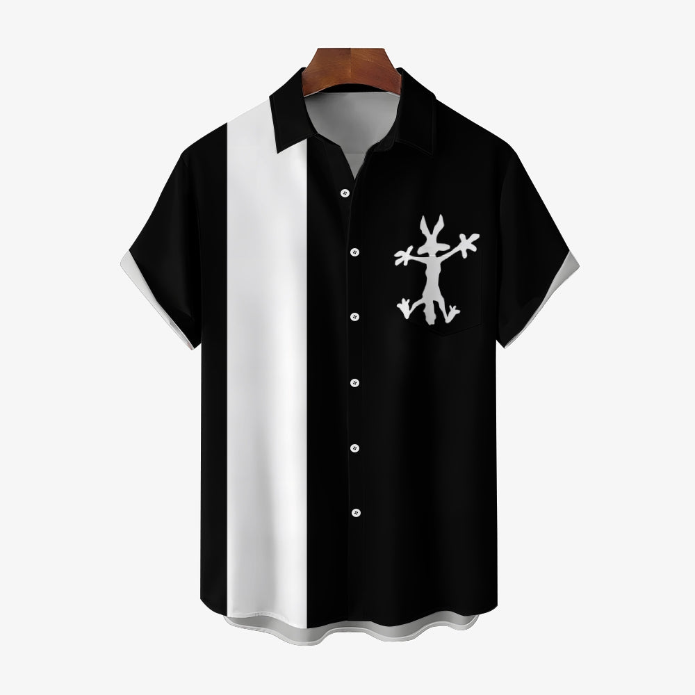 Men's Retro Cartoon Print Bowling Shirt 2412006742