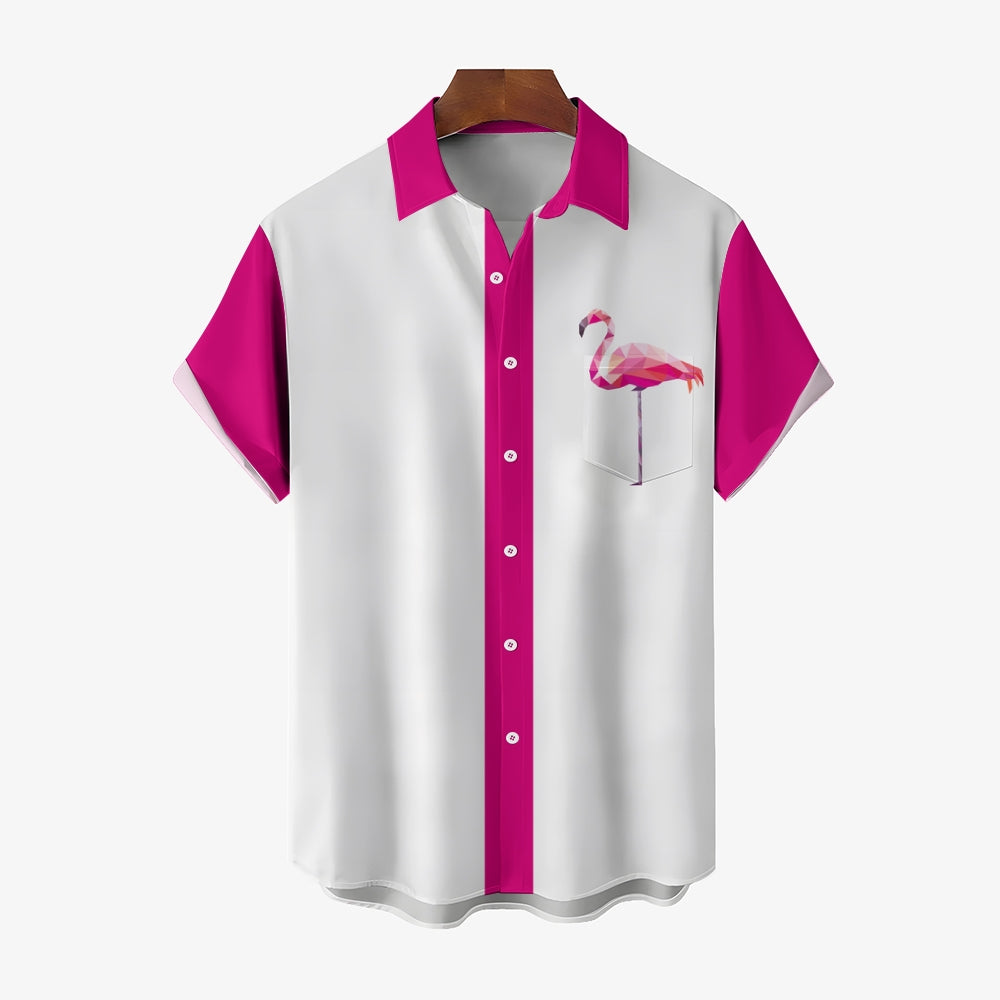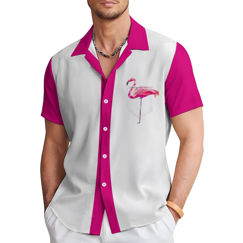 Pink Flamingo Graphic Men's Casual Short Sleeve Hawaiian Shirt 2401000398