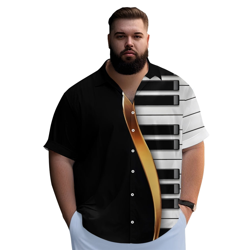 Plus Size Men's Piano Keyboard Print Short Sleeve Shirt 2407003304