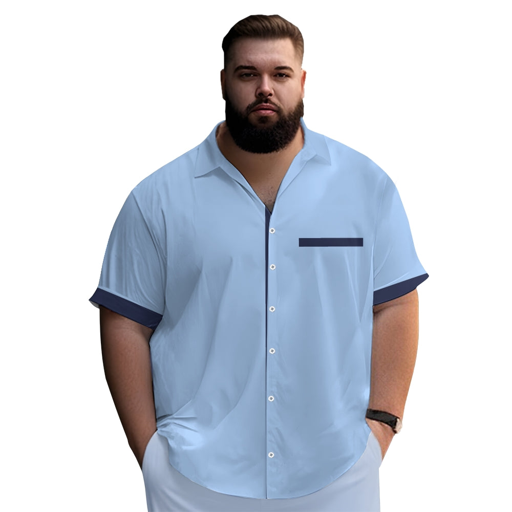 Men's Retro 50s Style Black Blue Classic Bowling Shirt Short Sleeve Shirt 2307100610