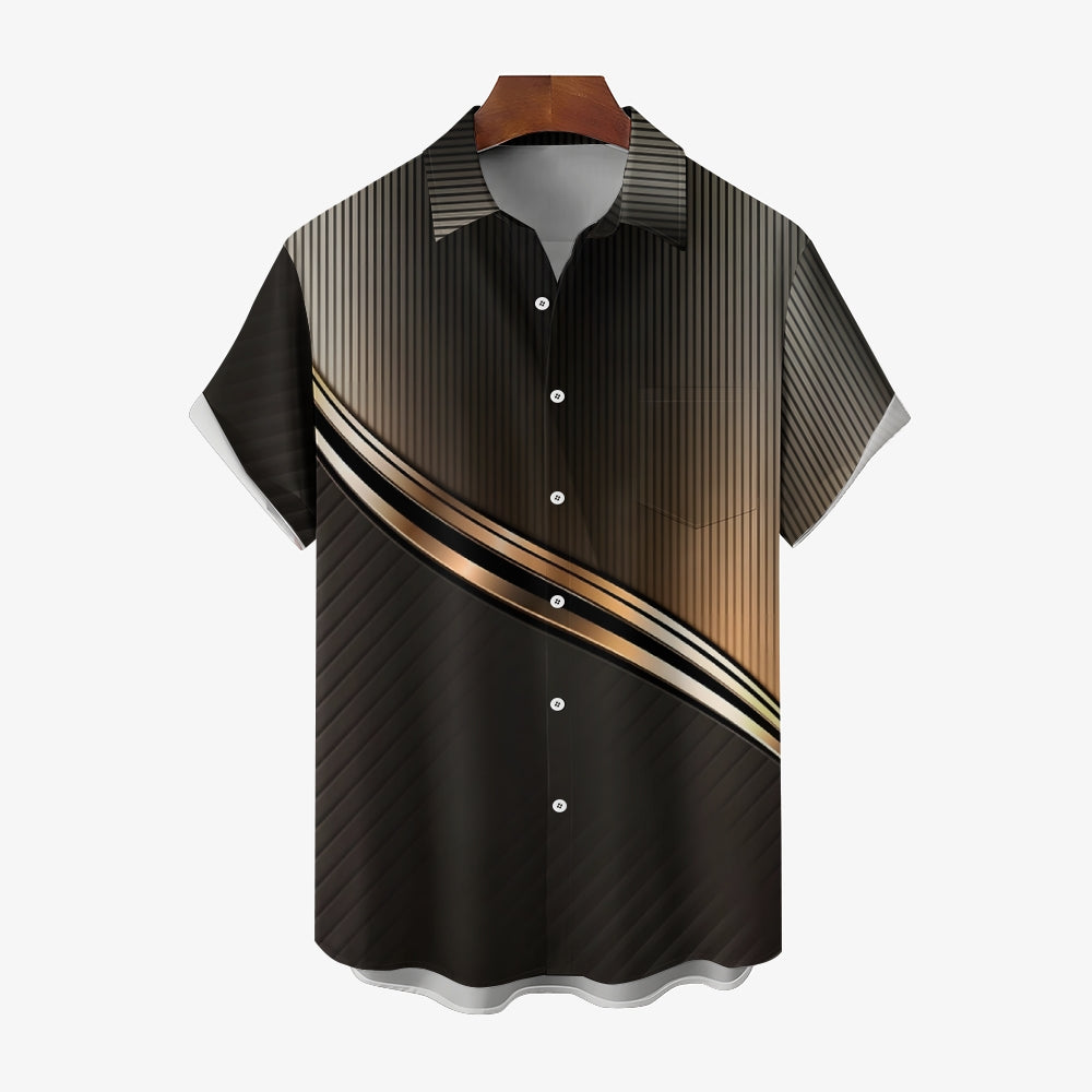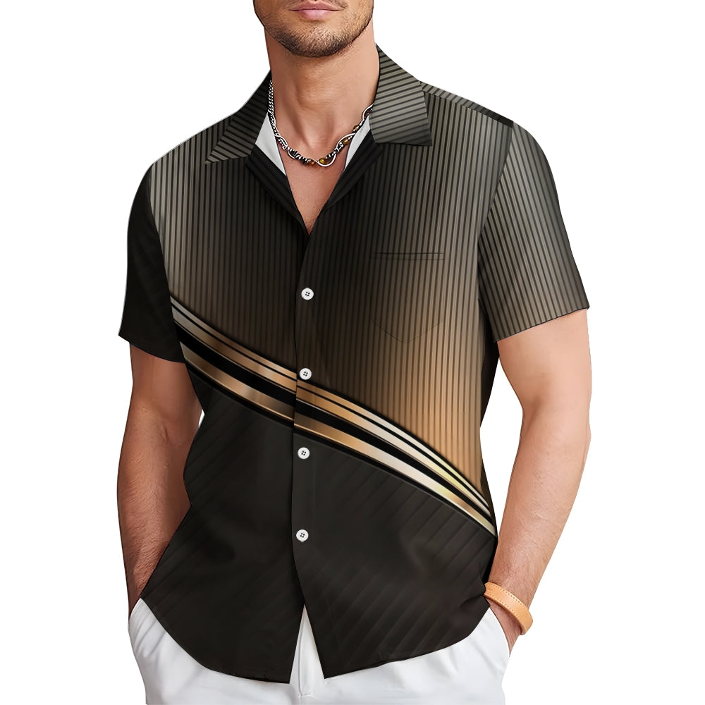 Geometric Striped Plant Pocket Short-Sleeved Casual Shirt 2311000242