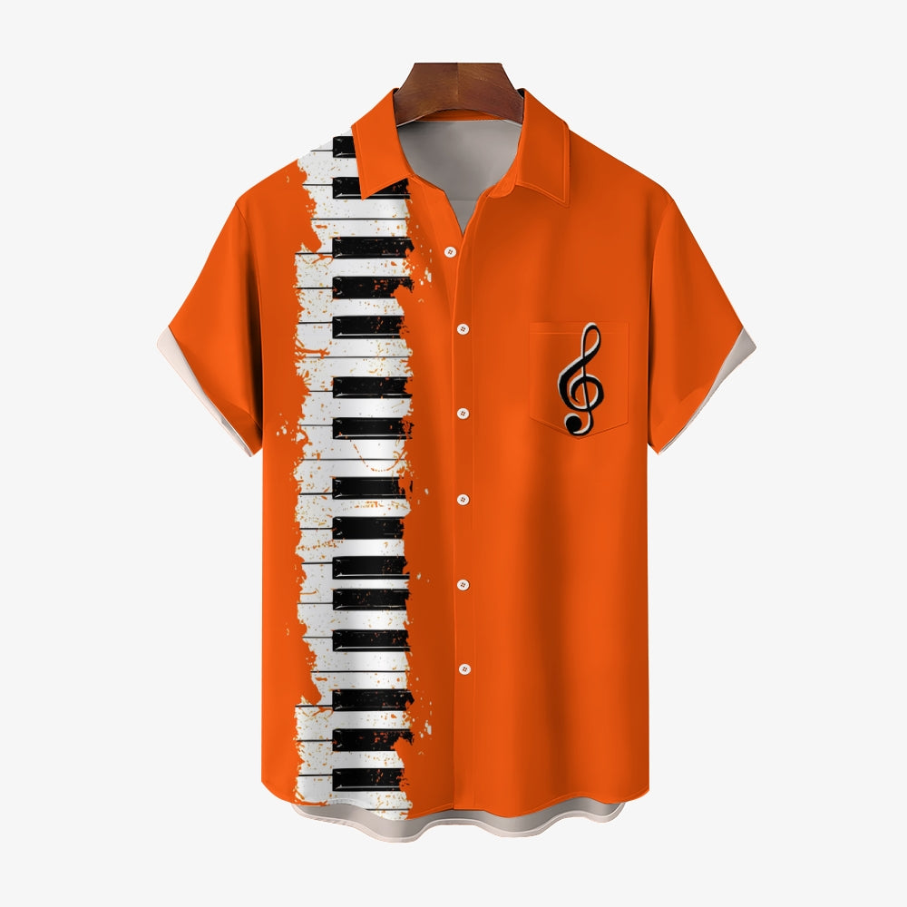 Men's Music Note Casual Bowling Shirt Short Sleeve Shirt 2406000048