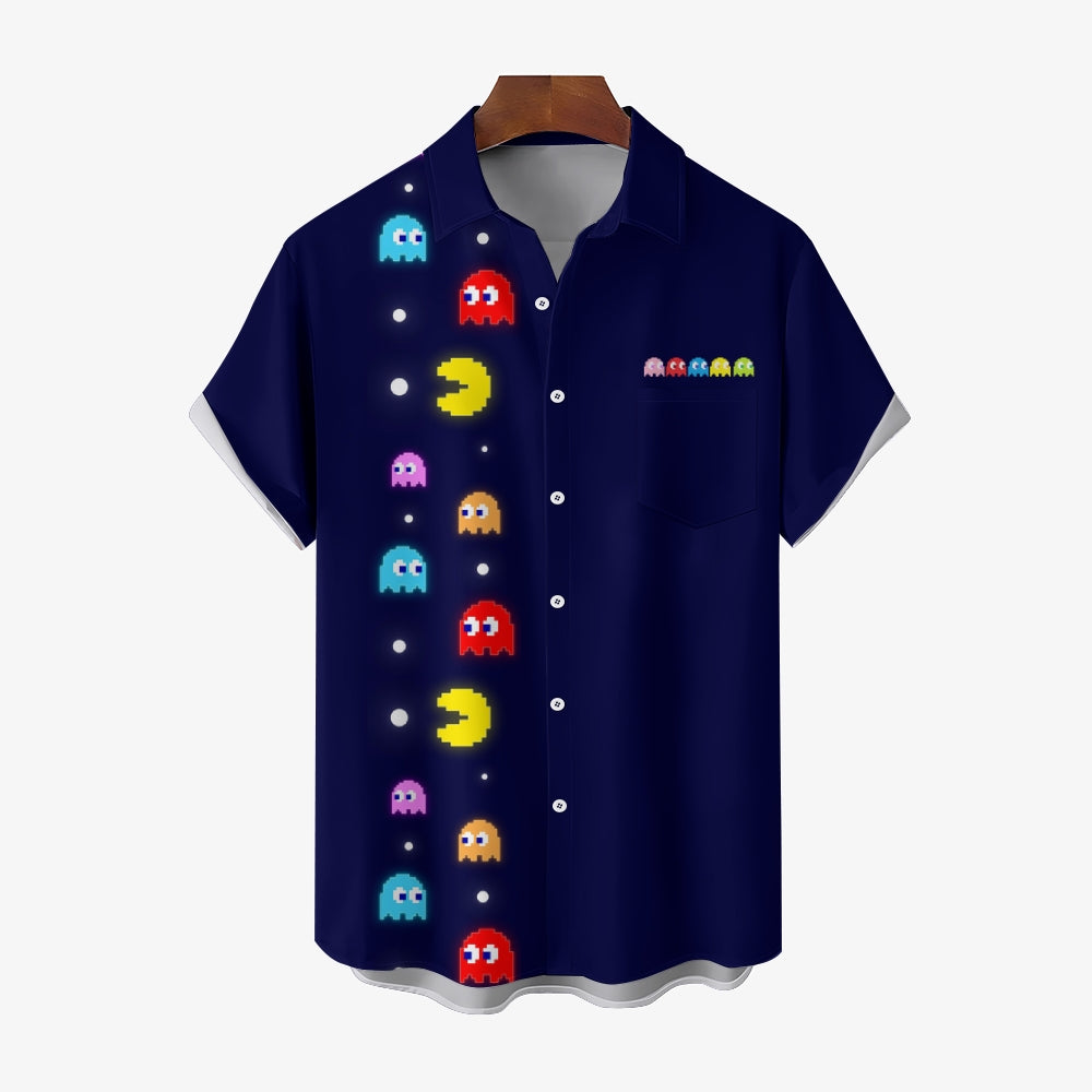 Navy Pac-Man Game Hawaiian Short Sleeve Shirt 2407004747