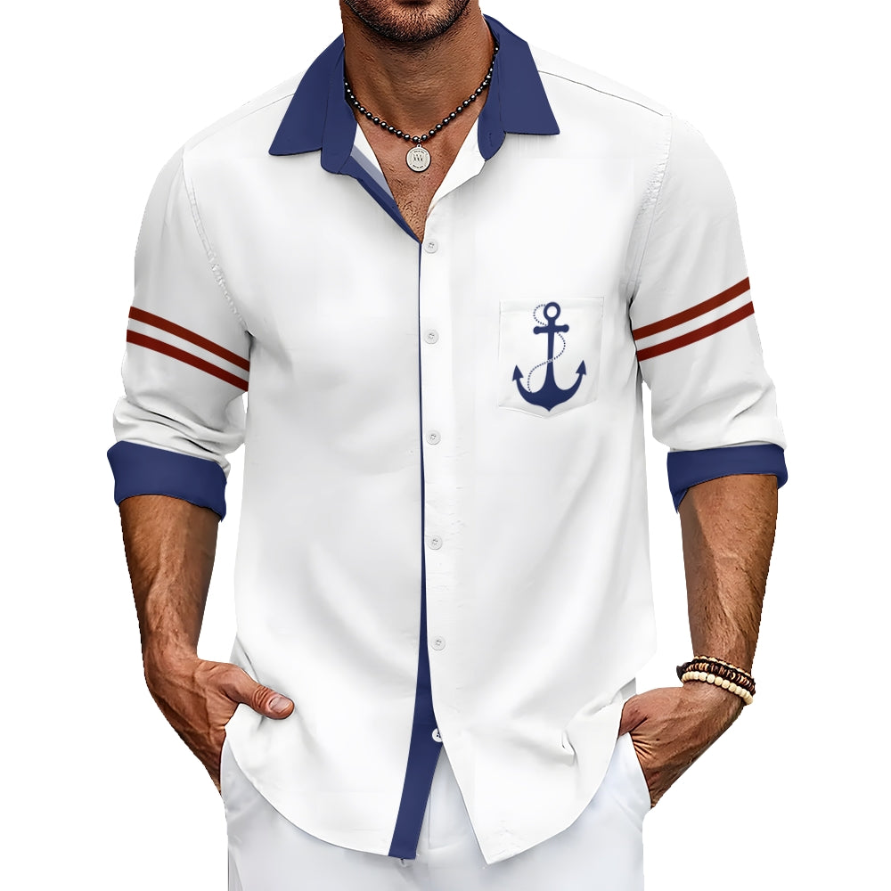 Men's Basic Anchor Print Long-Sleeved Shirt 2408003379