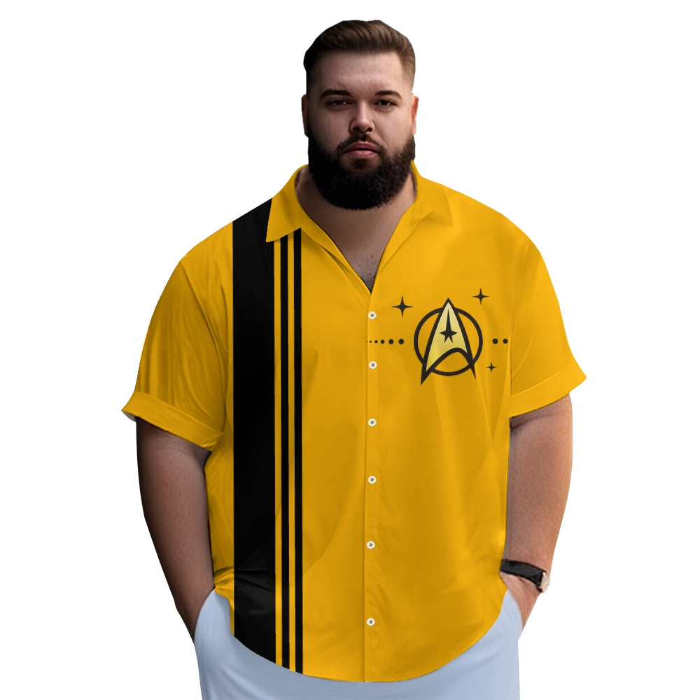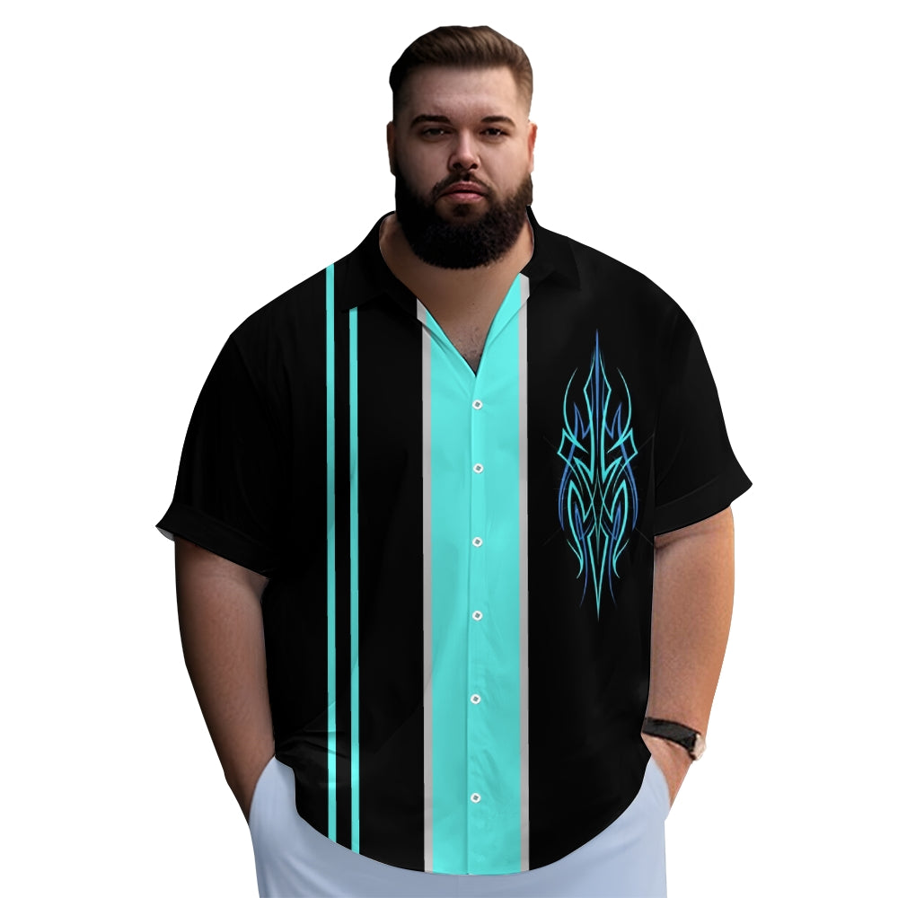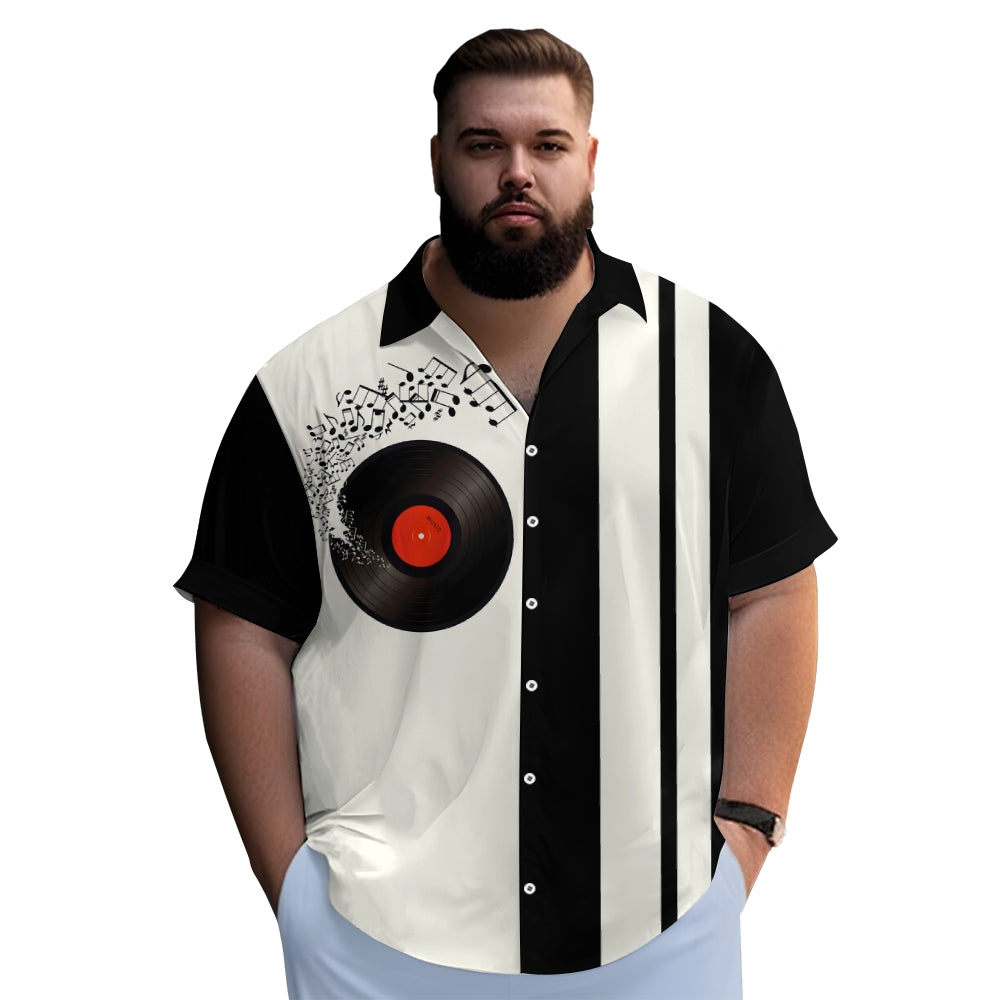 Men'Music Vinyl Record Print Plus Size Bowling Shirt Short Sleeve Shirt 2404000647