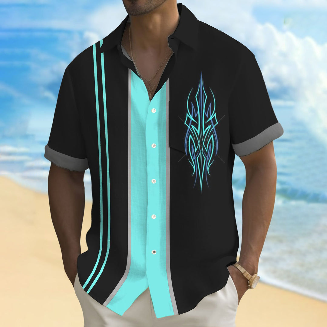 Men's Vintage 50s Style Classic Bowling Shirt Short Sleeve Shirt 2307100607