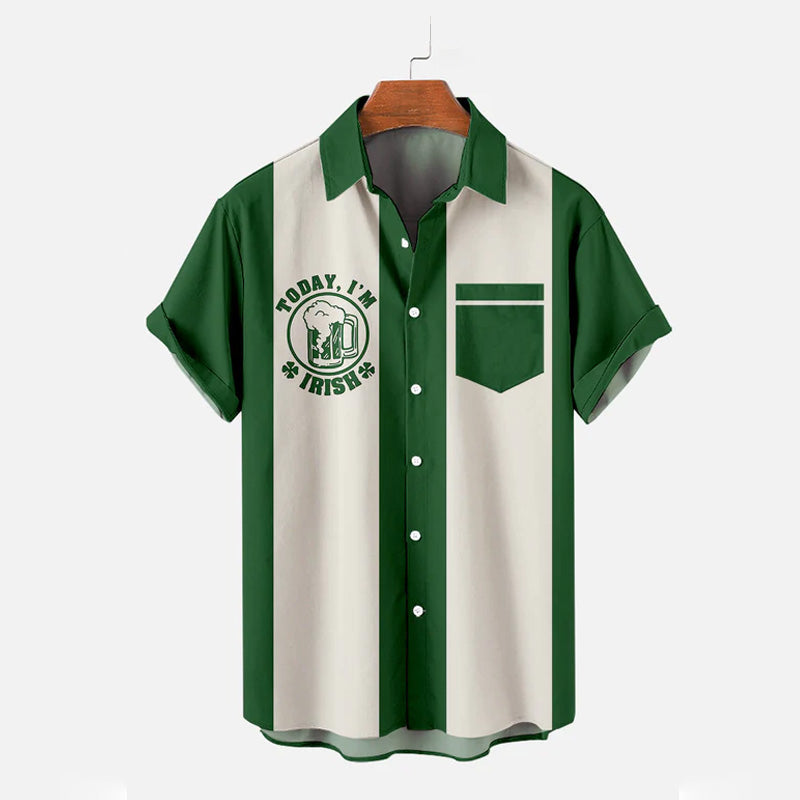 St. Patrick's Day Beer Print Men's Button Short Sleeve Shirt 2501009491