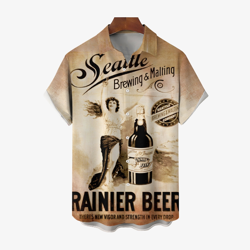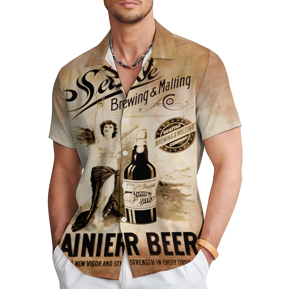 Men's 50's Retro Beer Movie Casual Short Sleeve Shirt 2311000328