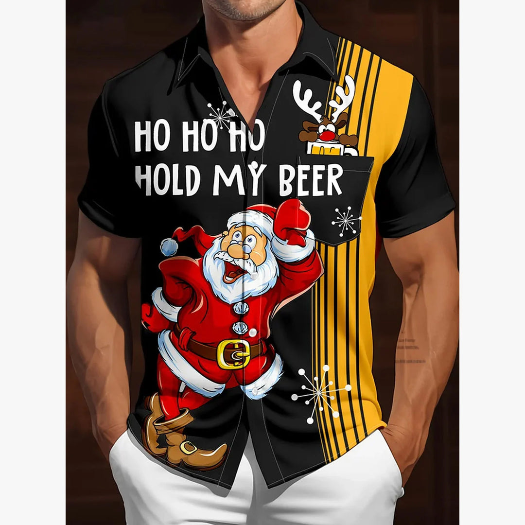 Christmas Beer Chest Pocket Short Sleeved Shirt 2310000254
