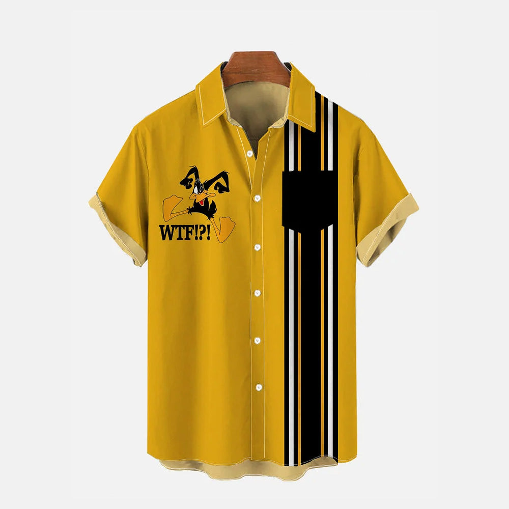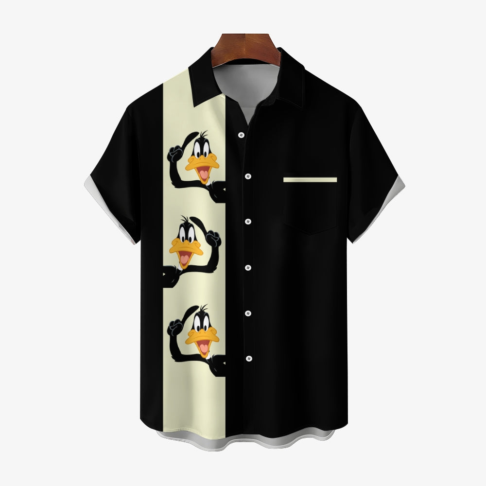 Classic Cartoon Duck Stripe Short Sleeve Casual Bowling Shirt 2412007761