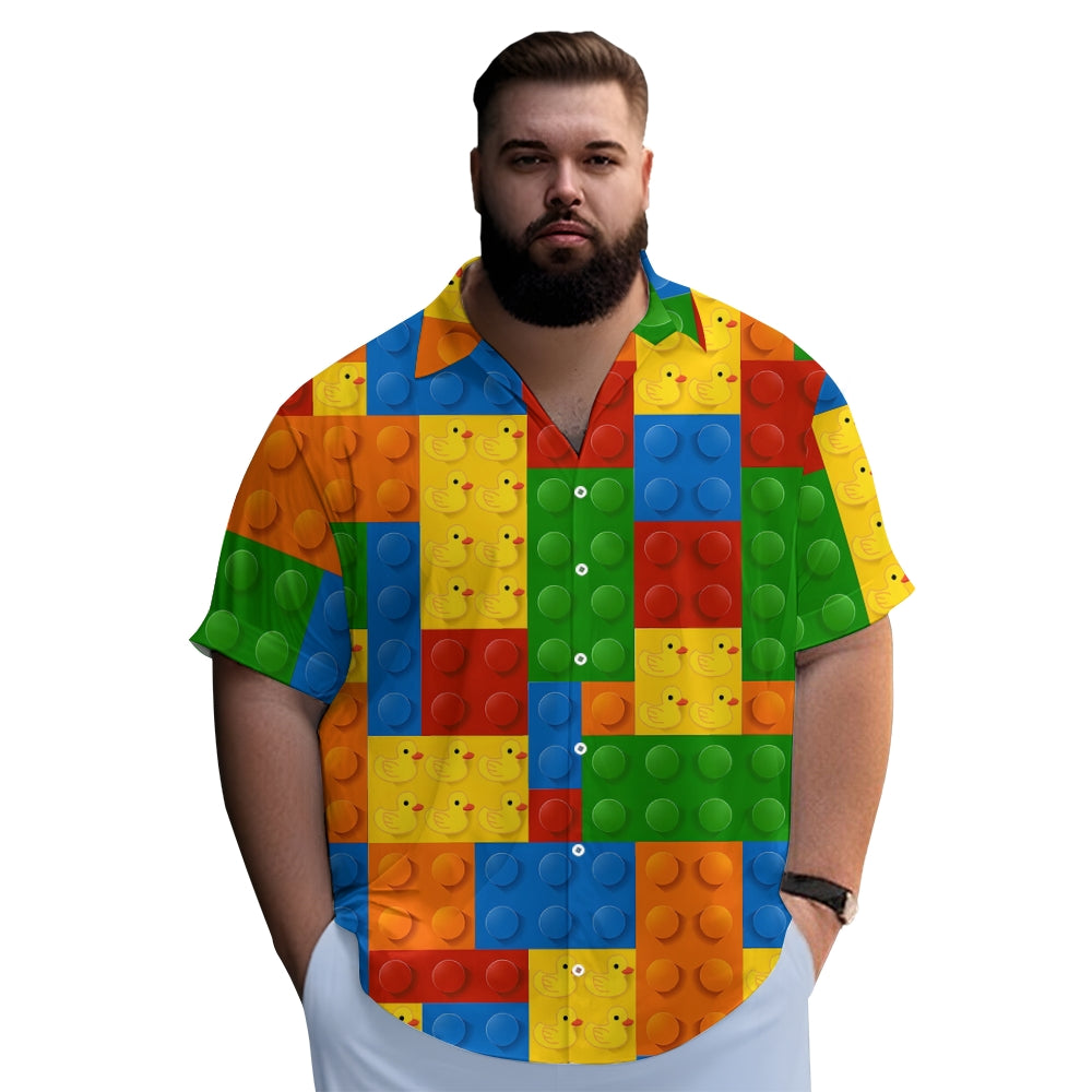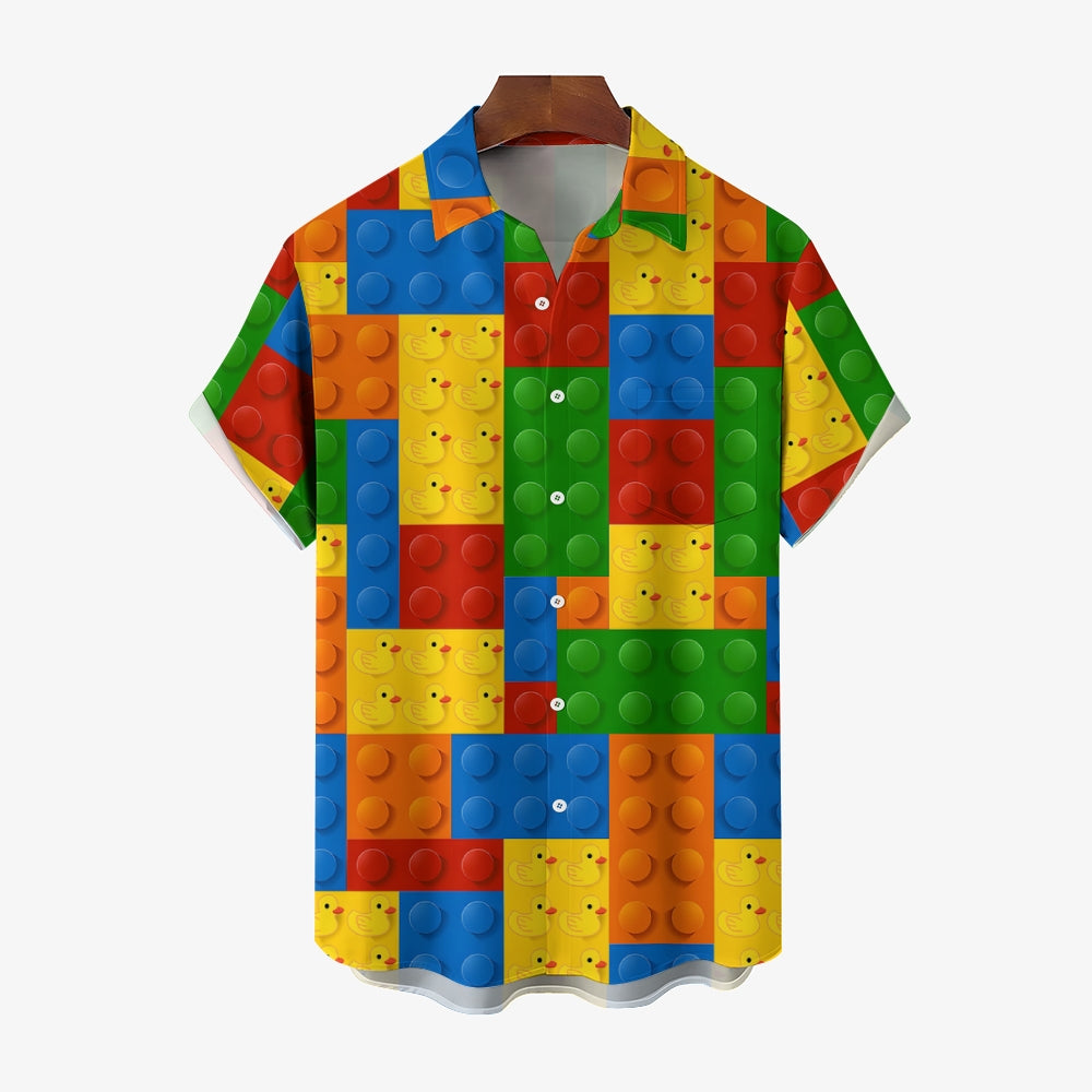 3D Building Blocks Little Yellow Duck Casual Short Sleeve Shirt 2311000659