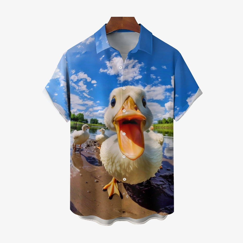 Men's Hawaiian Duck Print Casual Short Sleeve Shirt 2306105797
