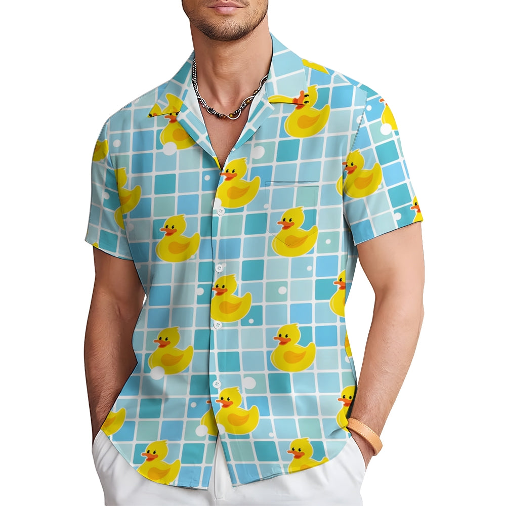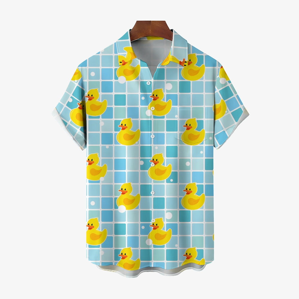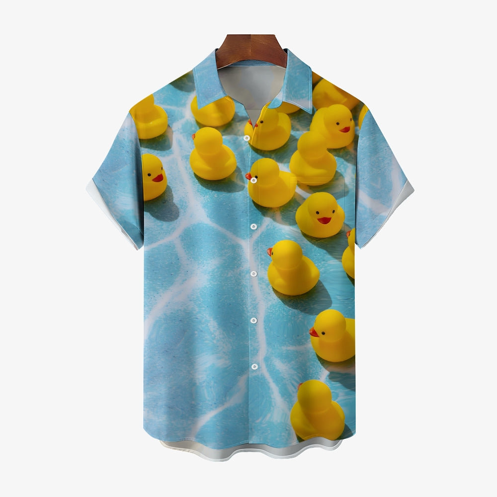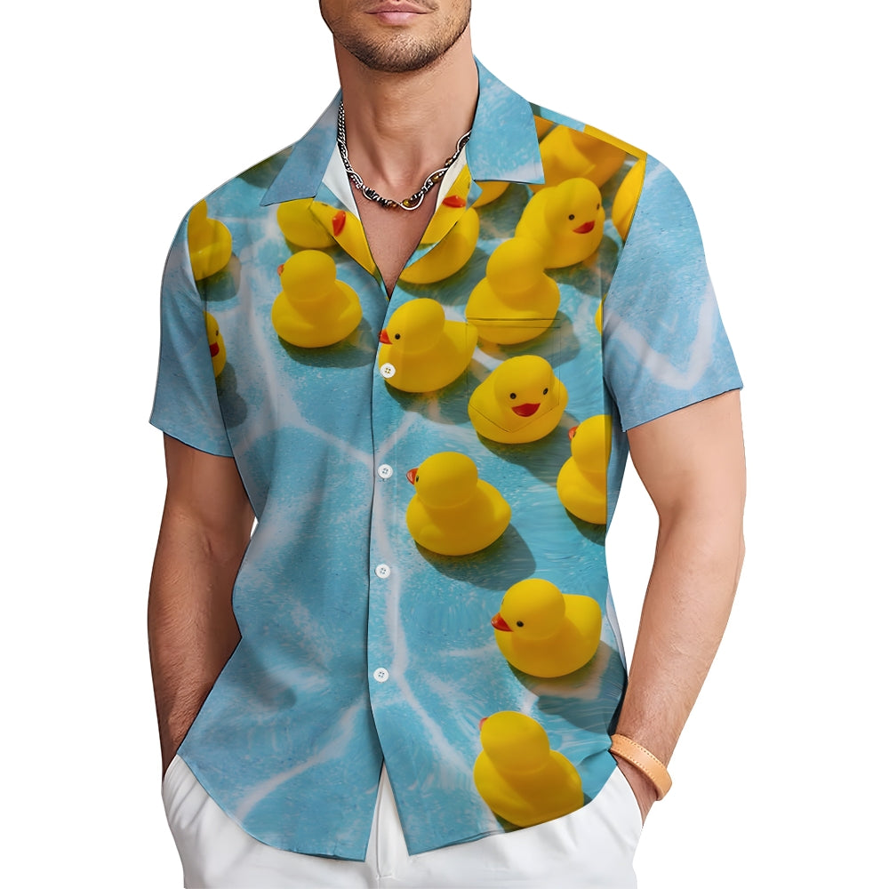 Men's Swimming Yellow Rubber Duck Casual Short Sleeve Shirt 2403000374