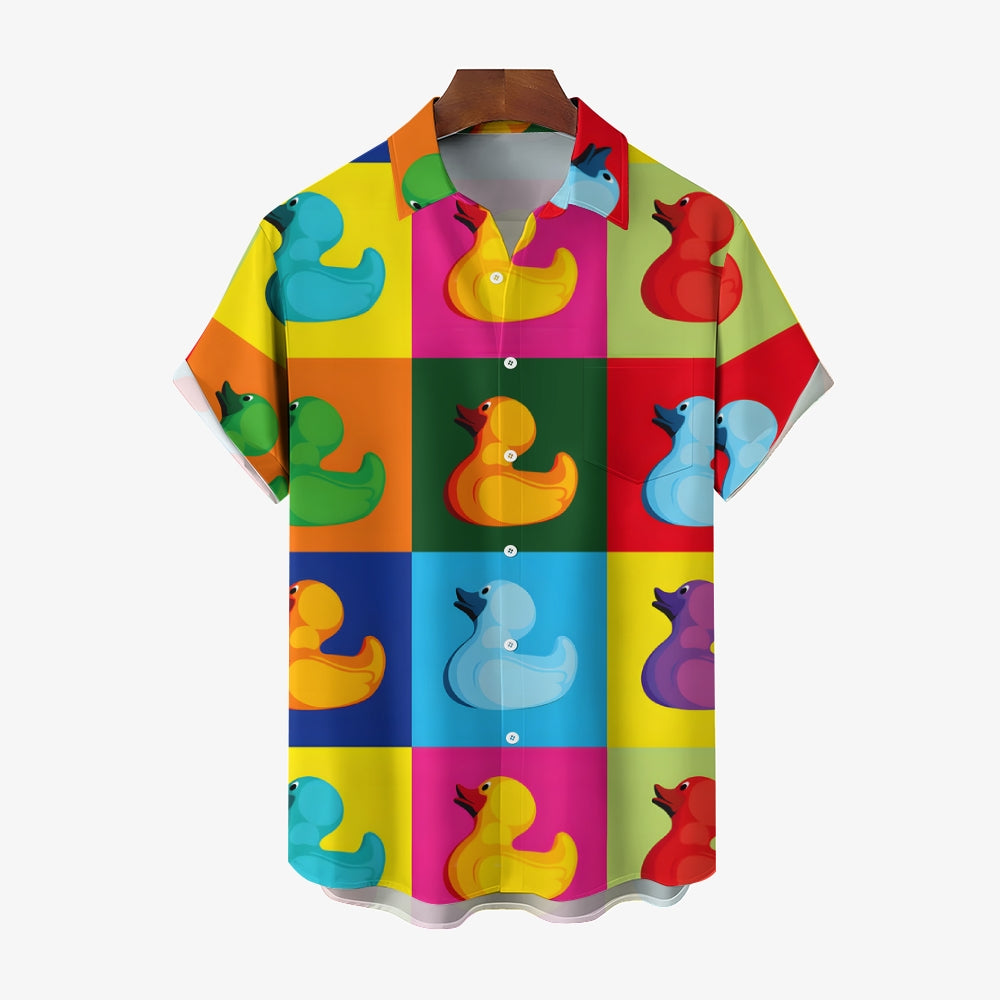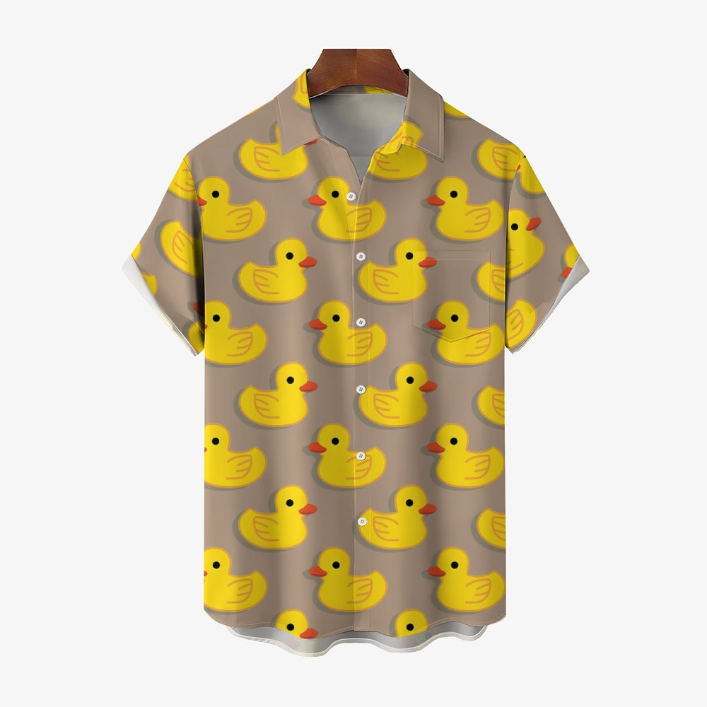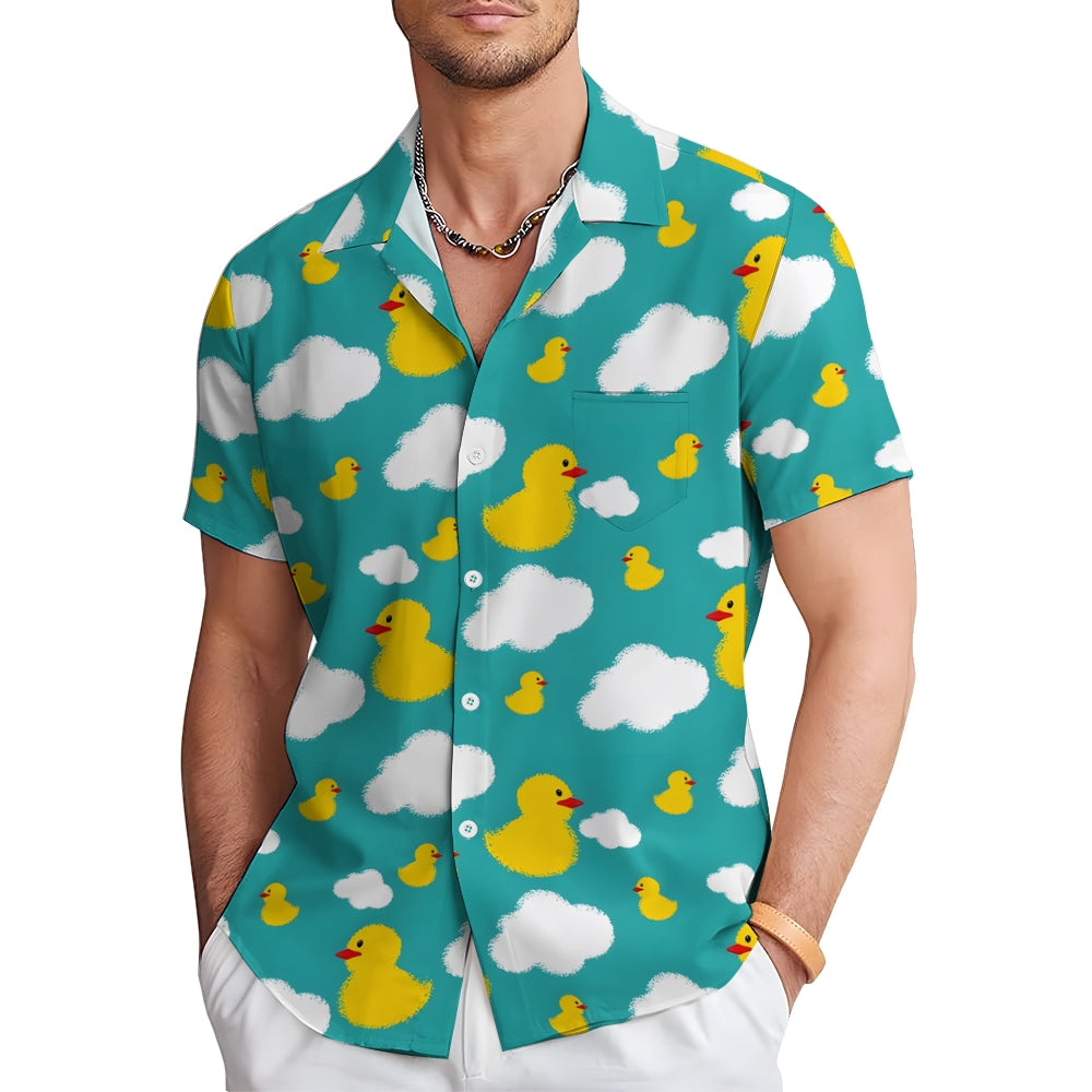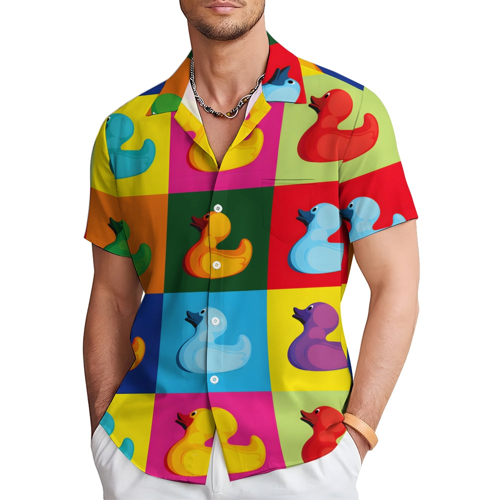 Men's Duck Print Hawaiian Casual Short Sleeve Shirt 2404000536