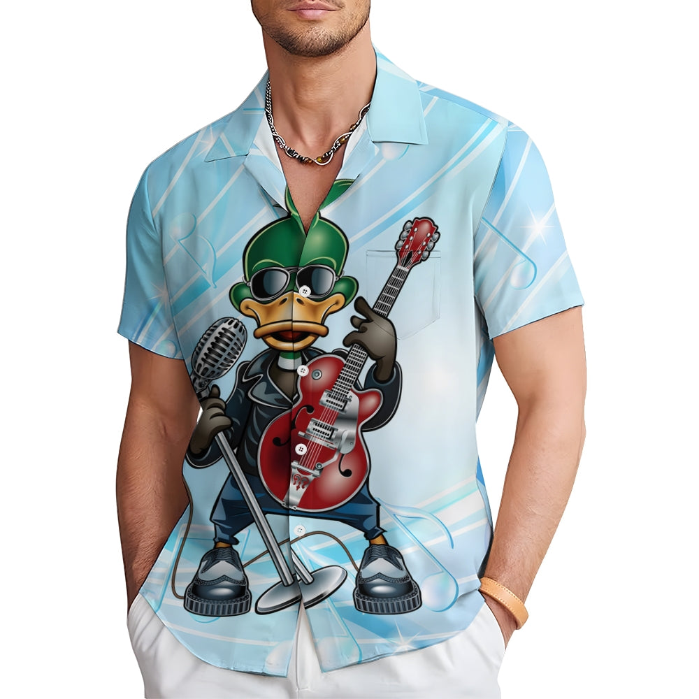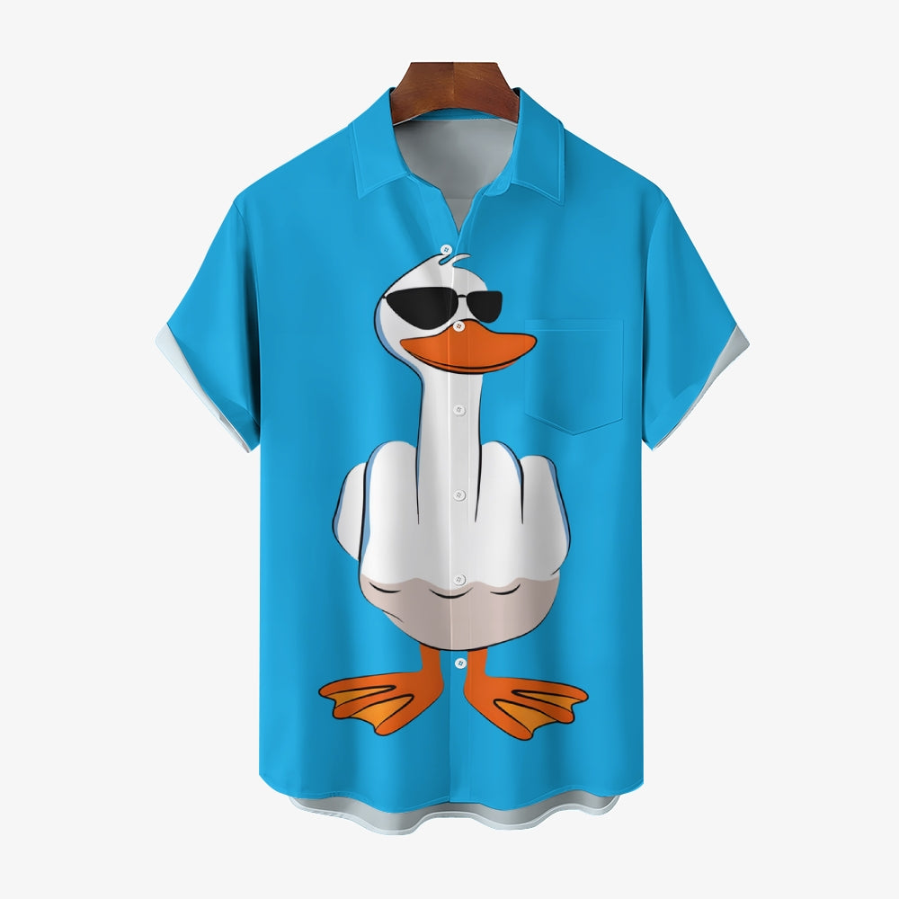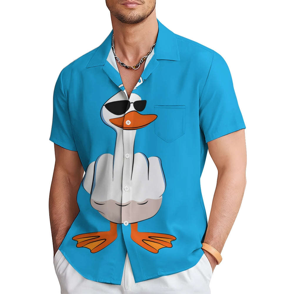 Funny Cartoon Duck Print Men's Button Pocket Short Sleeve Shirt 2412008281