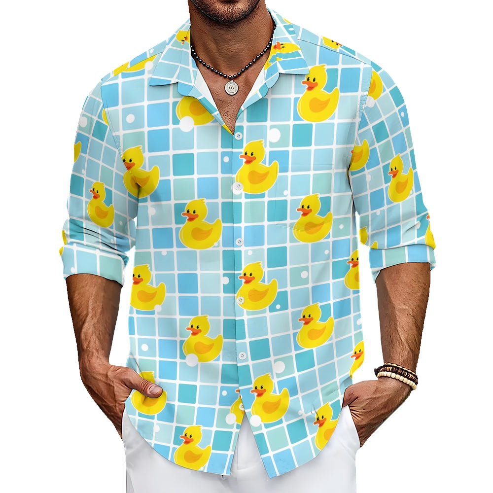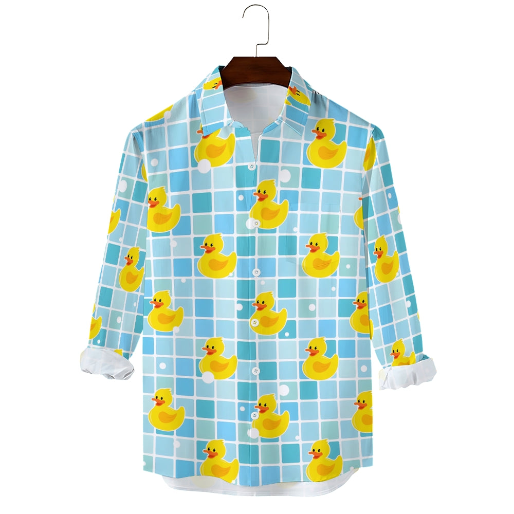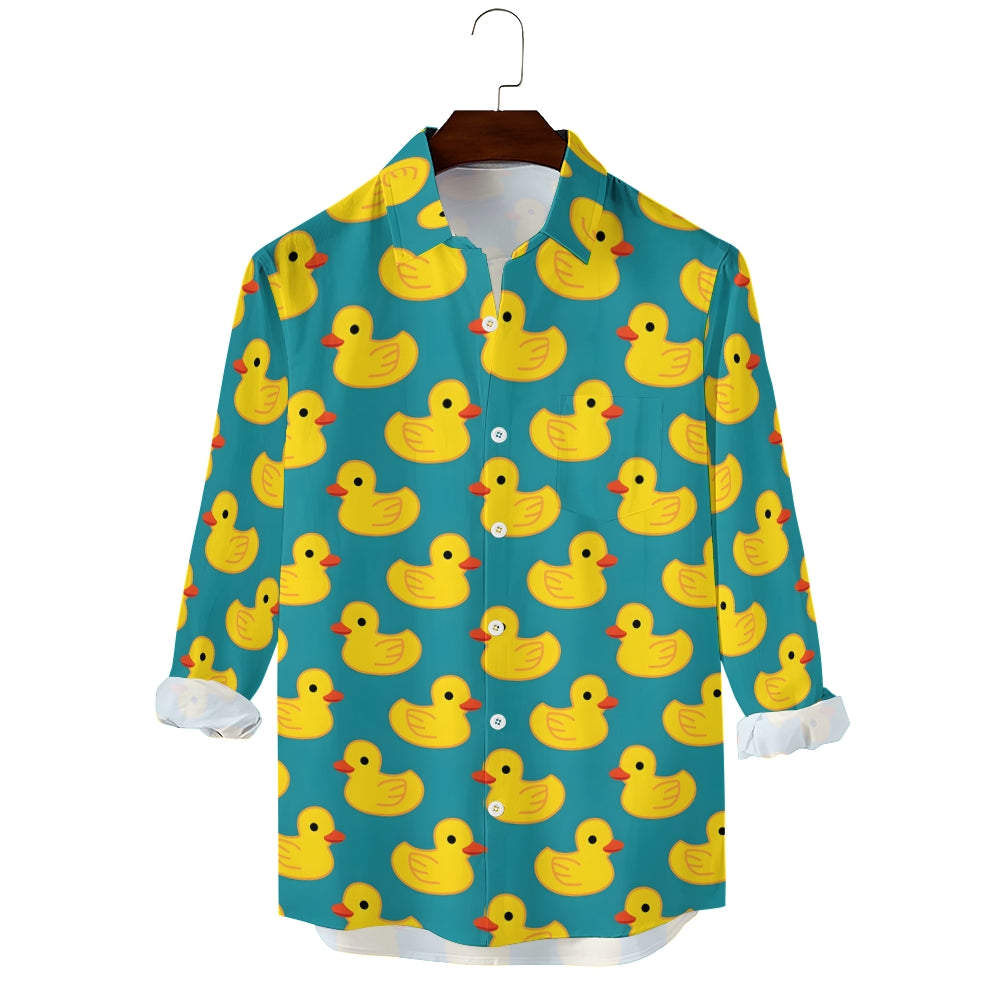 Men's Casual Little Yellow Duck Printed Long Sleeve Shirt 2403000419