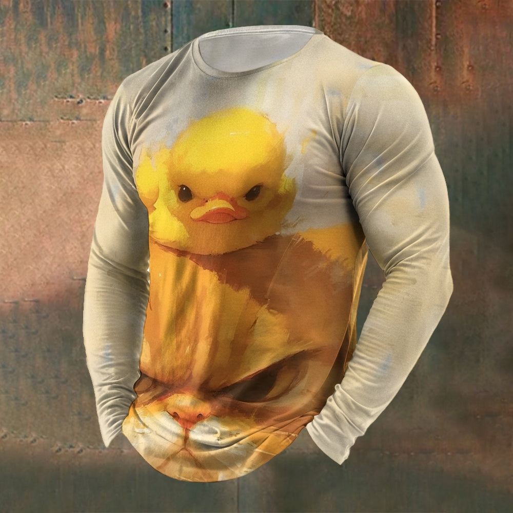 Men's Crew Neck Cat and Duck Print Long Sleeve T-Shirt 2411002478