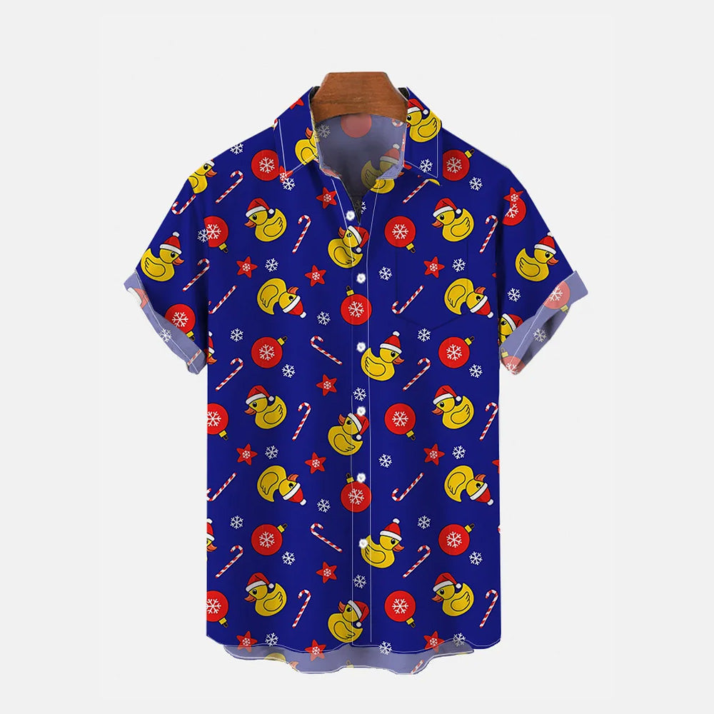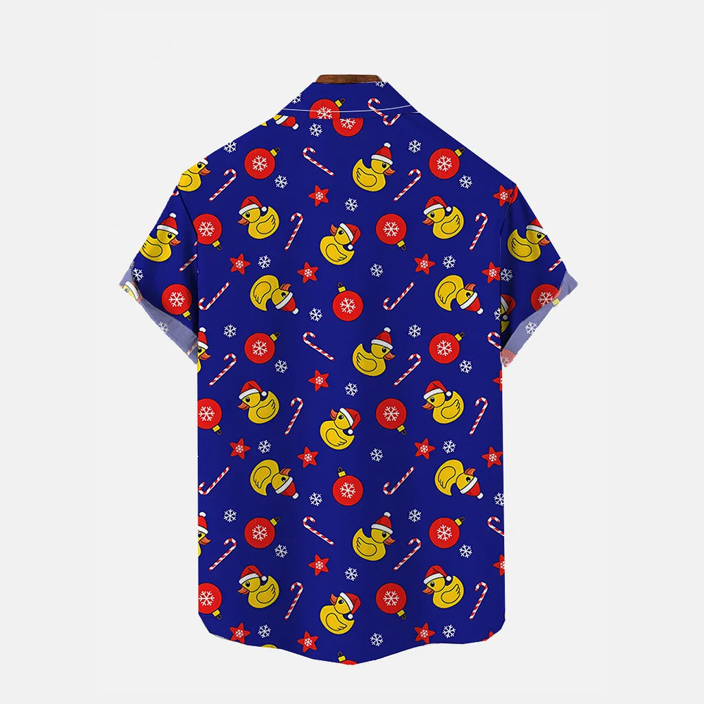 Men's Retro Christmas Fun Duck Print Short Sleeve Shirt