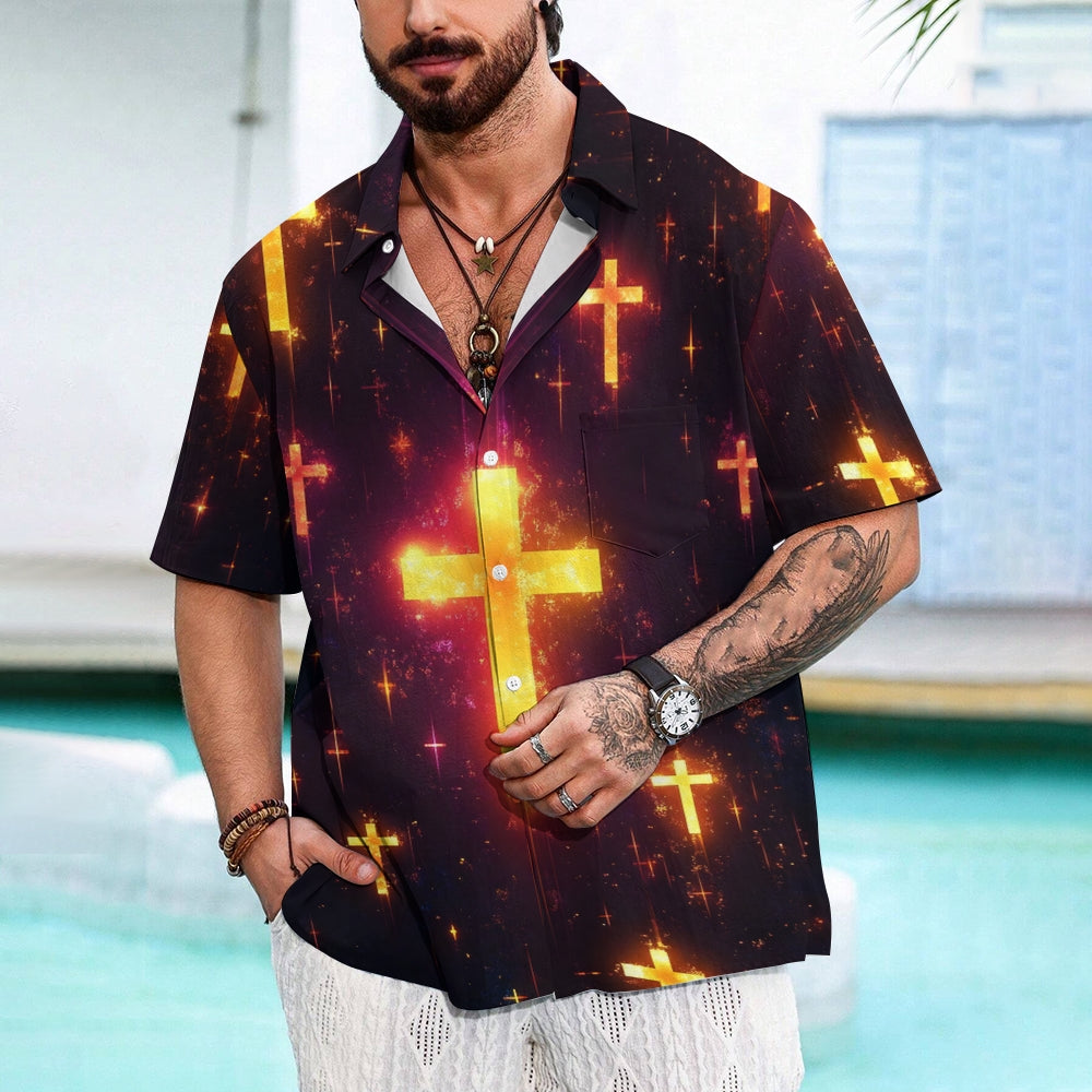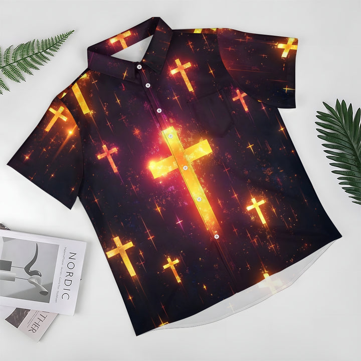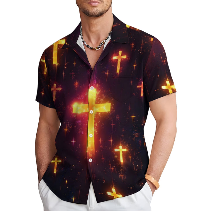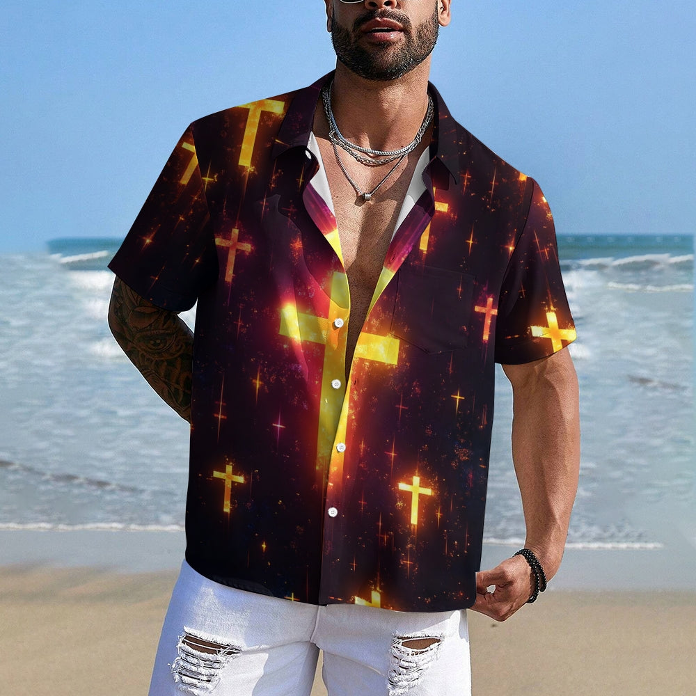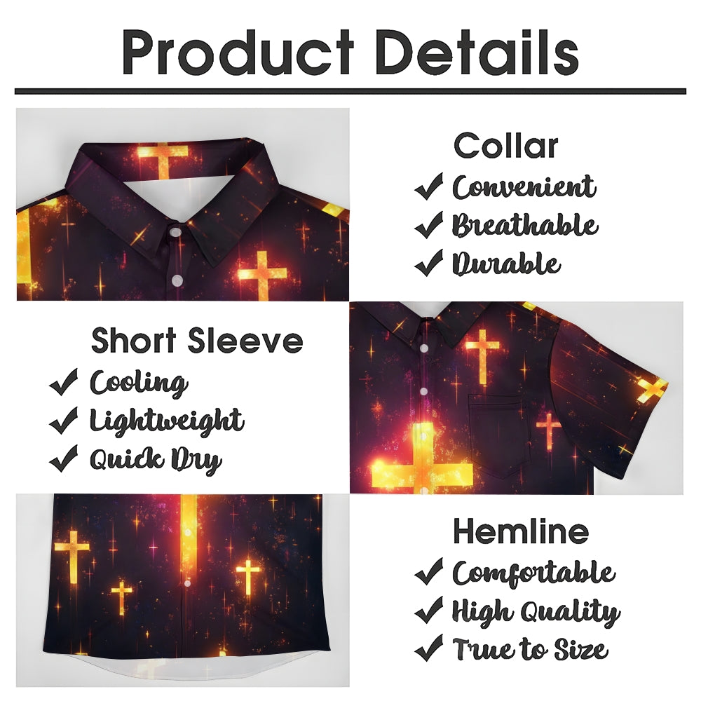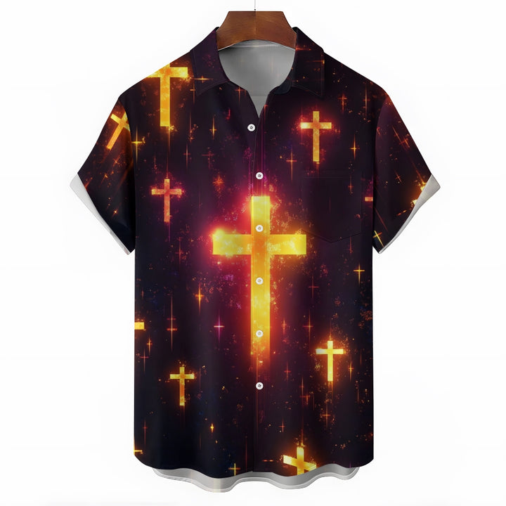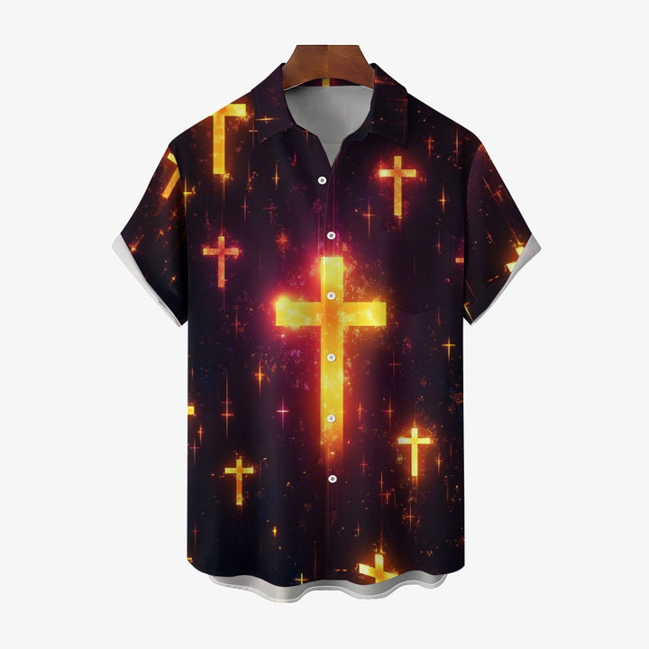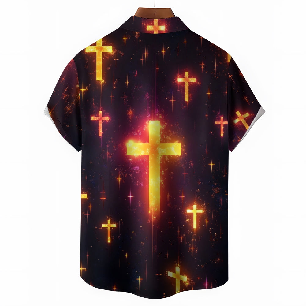 Easter Cross Print Casual Short Sleeve Shirt 2412008955