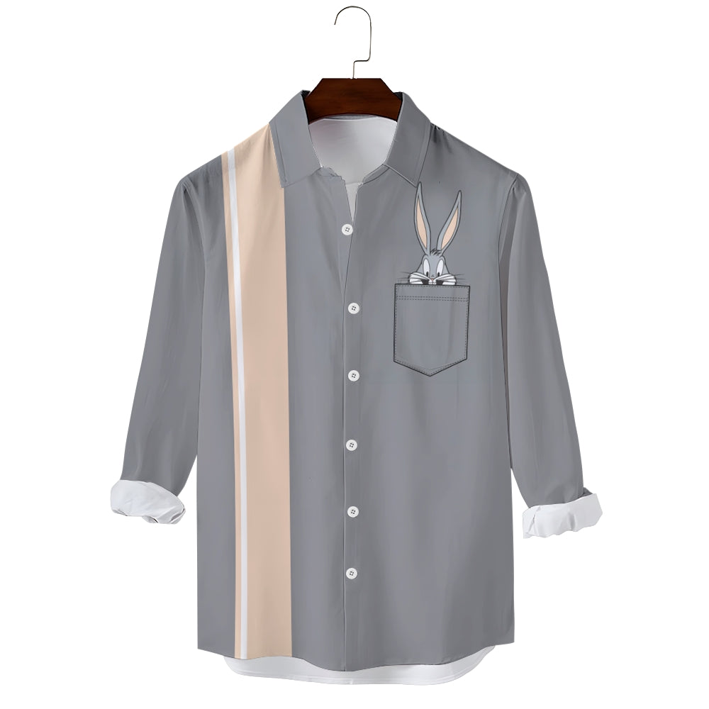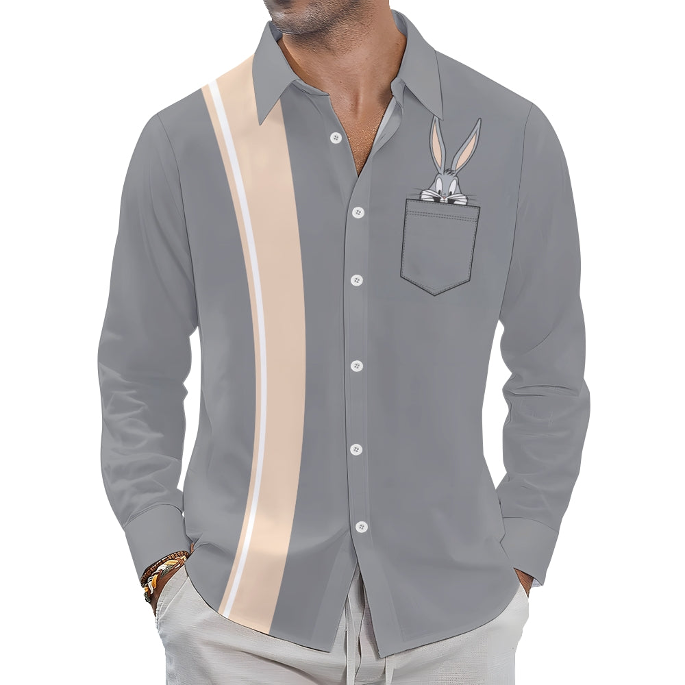 Retro Cartoon Rabbit Stripe Print Long Sleeve Shirt