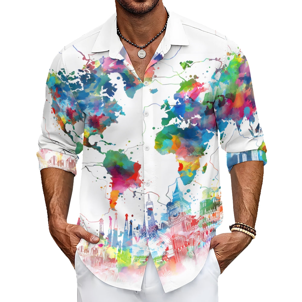 Men's Fashionable Casual Map Print Shirt 2411000212
