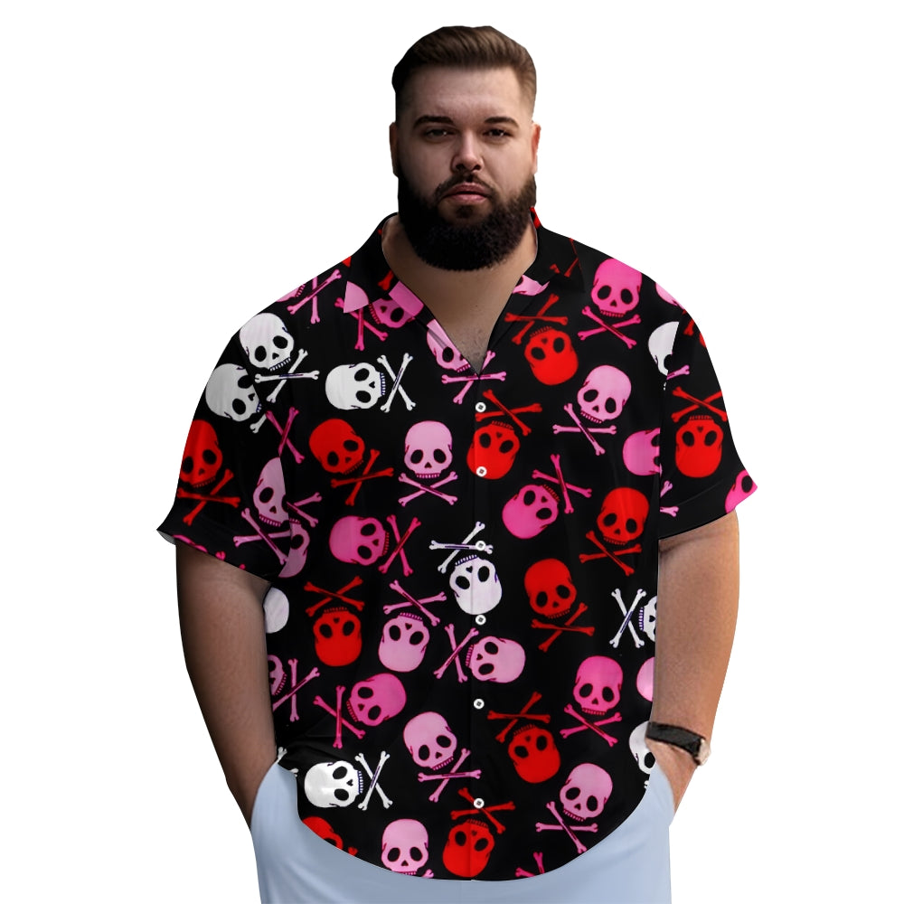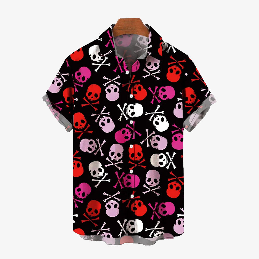 Pink Skull Print Oversized Bamboo Linen Short Sleeve Shirt