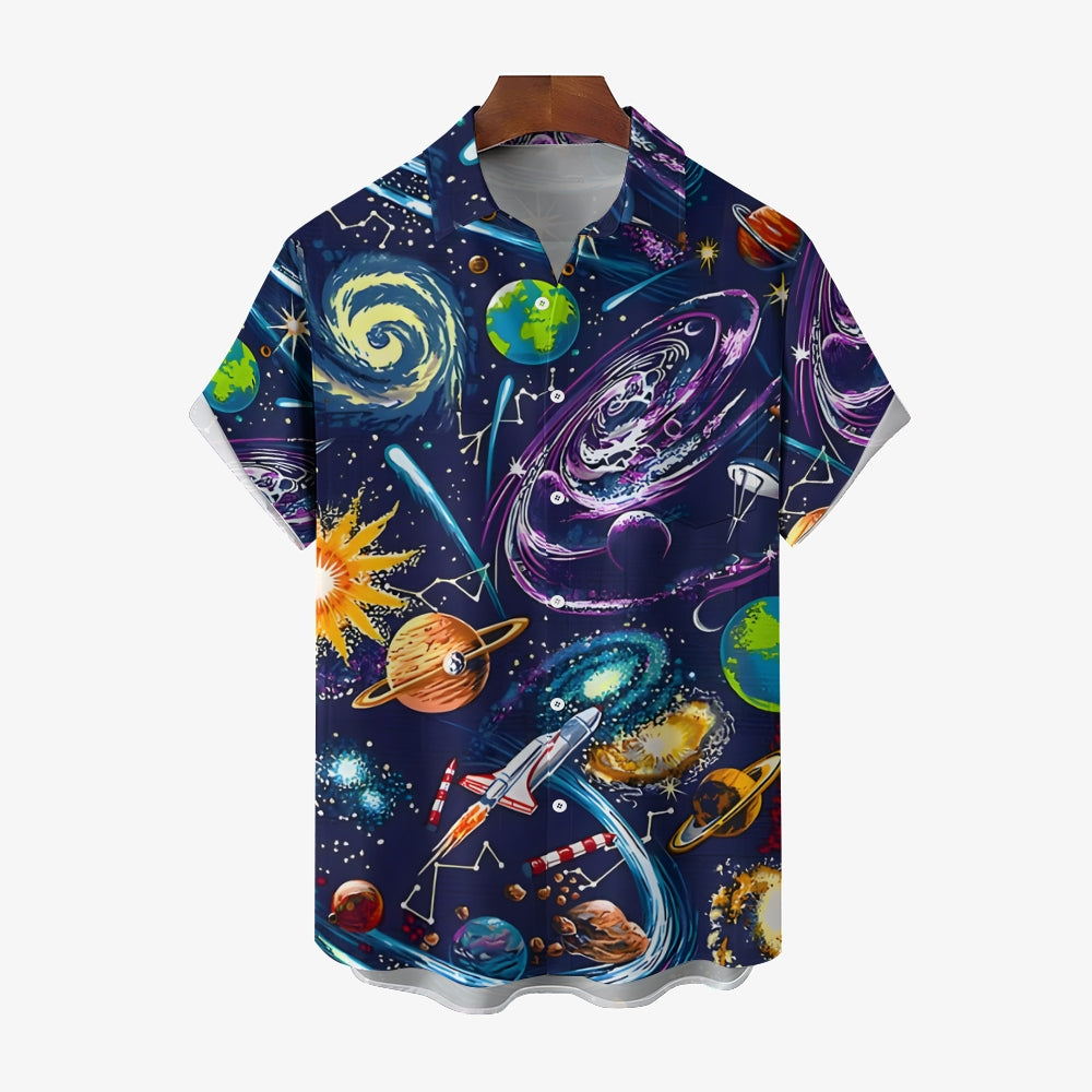 Men's Space Planet Print Casual Short Sleeve Shirt 2404000454