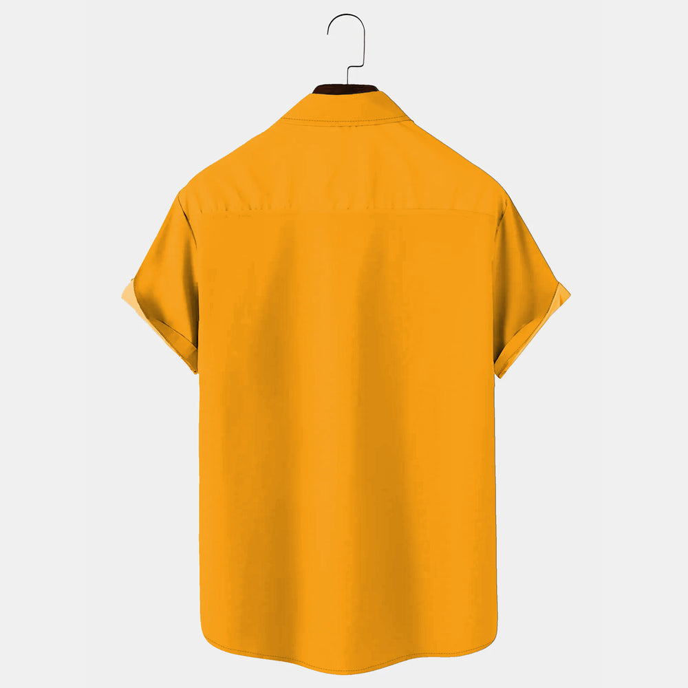 Men's Vintage 50s Style Black Orange Classic Bowling Shirt Short Sleeve Shirt 2307100608