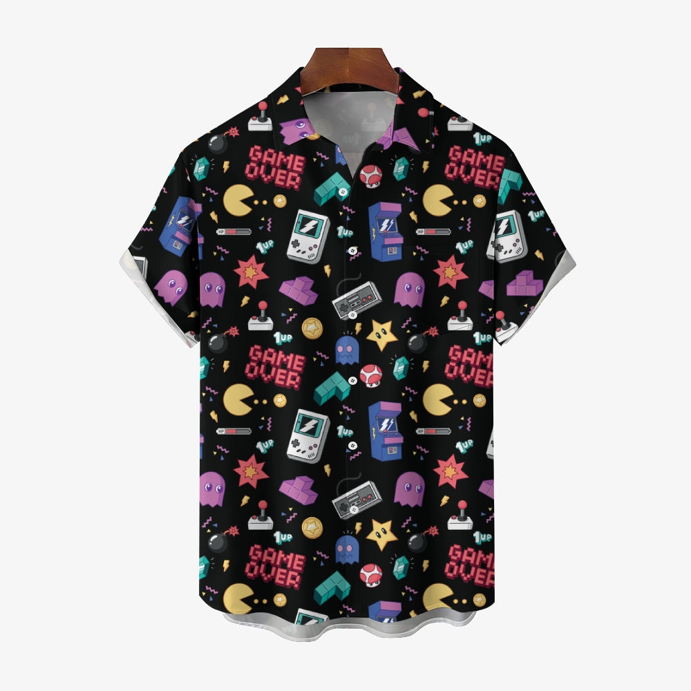 Game Cartoon Chest Pocket Casual Printed Short Sleeve Shirt 2406001683