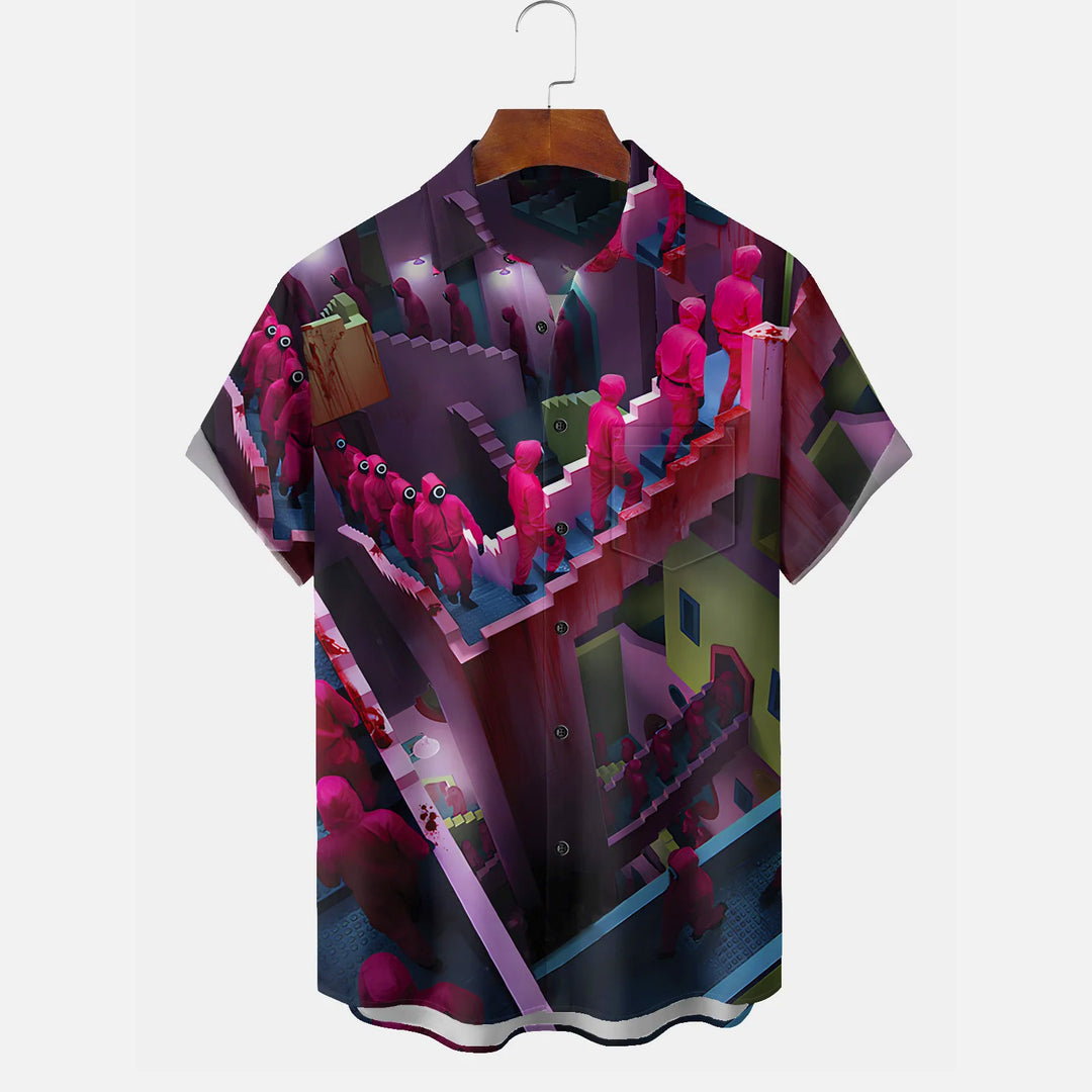 Men's Squid Game Casual Short Sleeve Shirt 2403000755