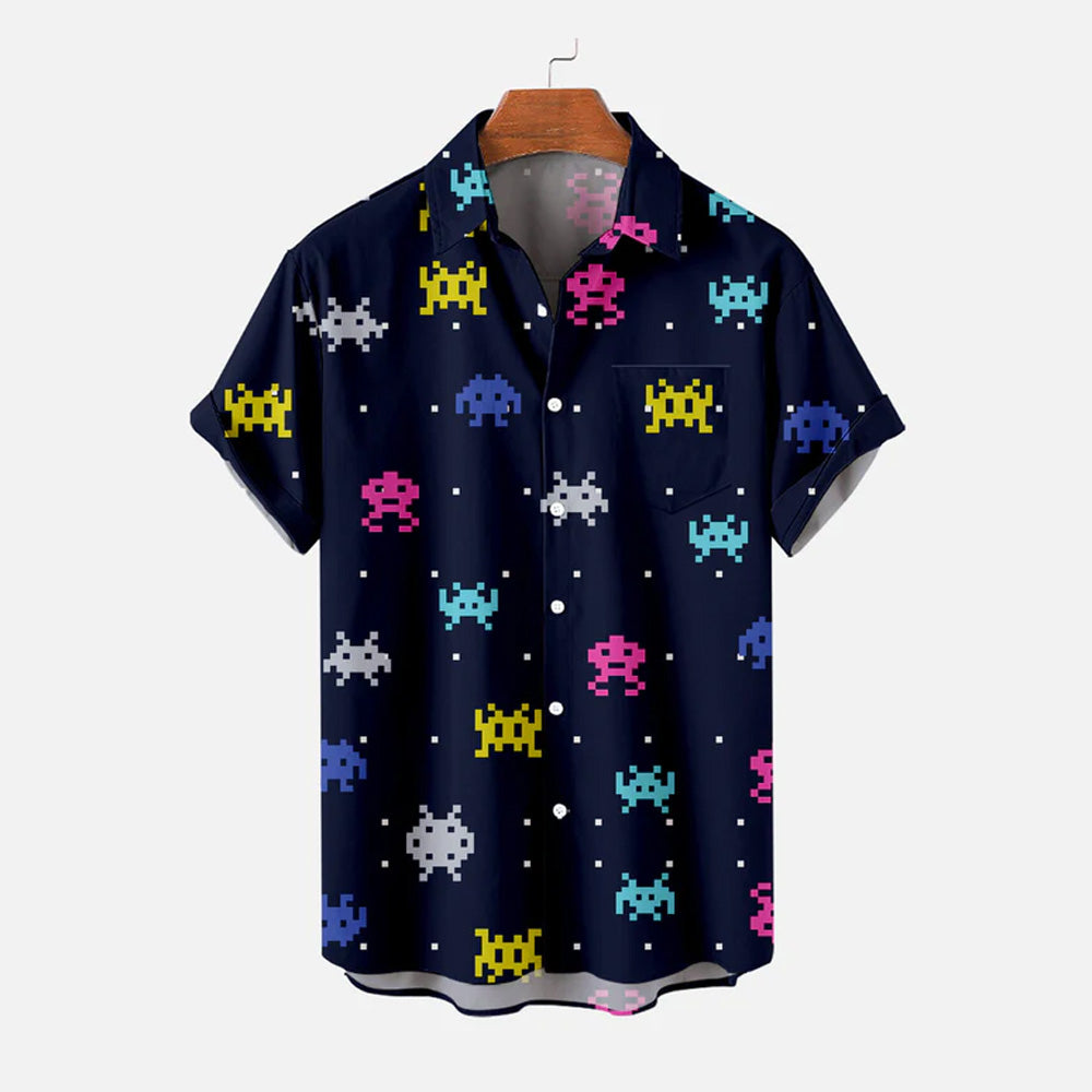 Men's Digital Invaders Game Casual Short Sleeve Shirt 2312000297
