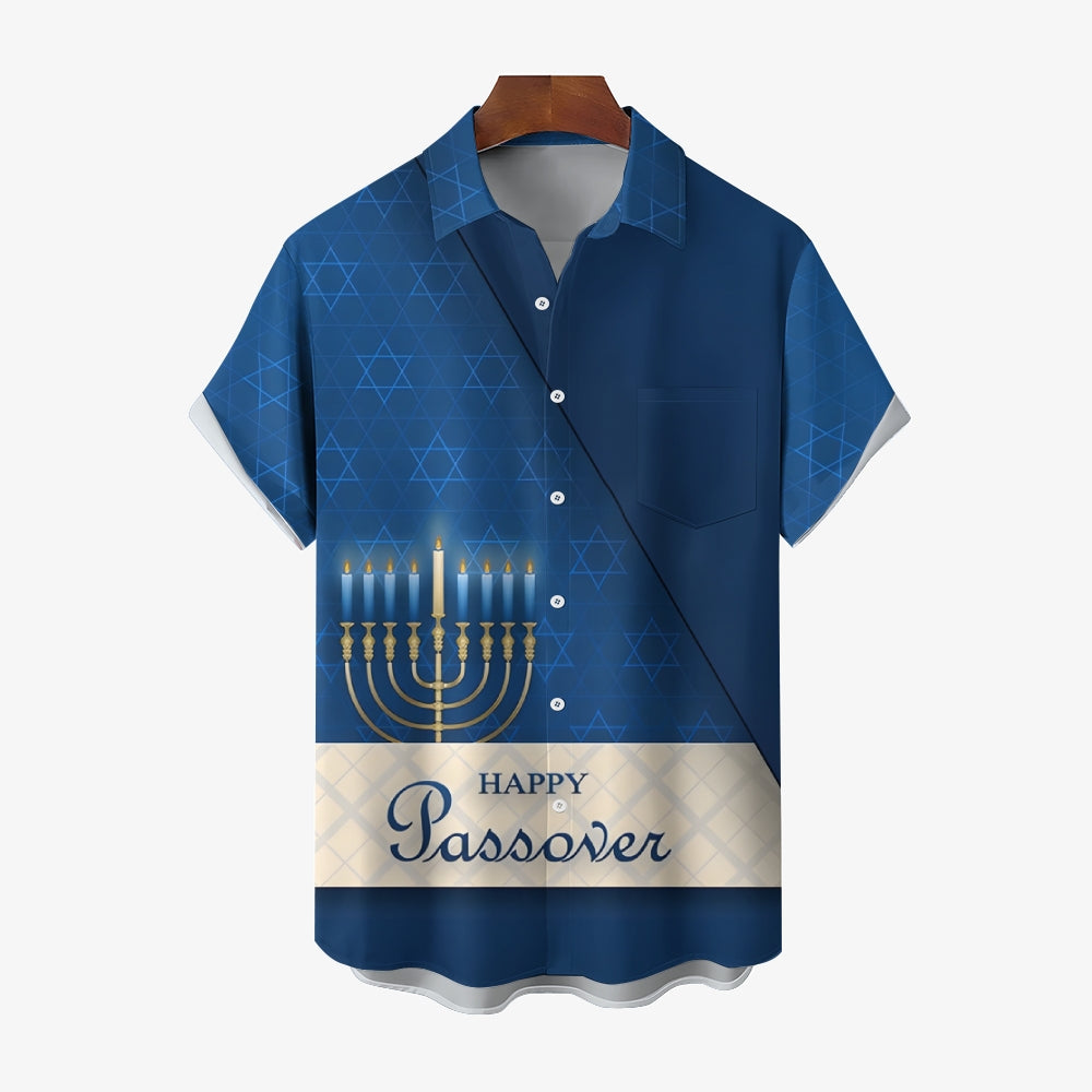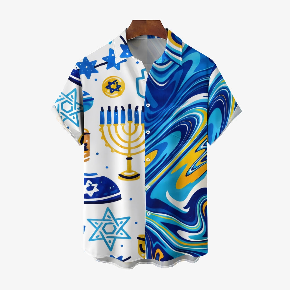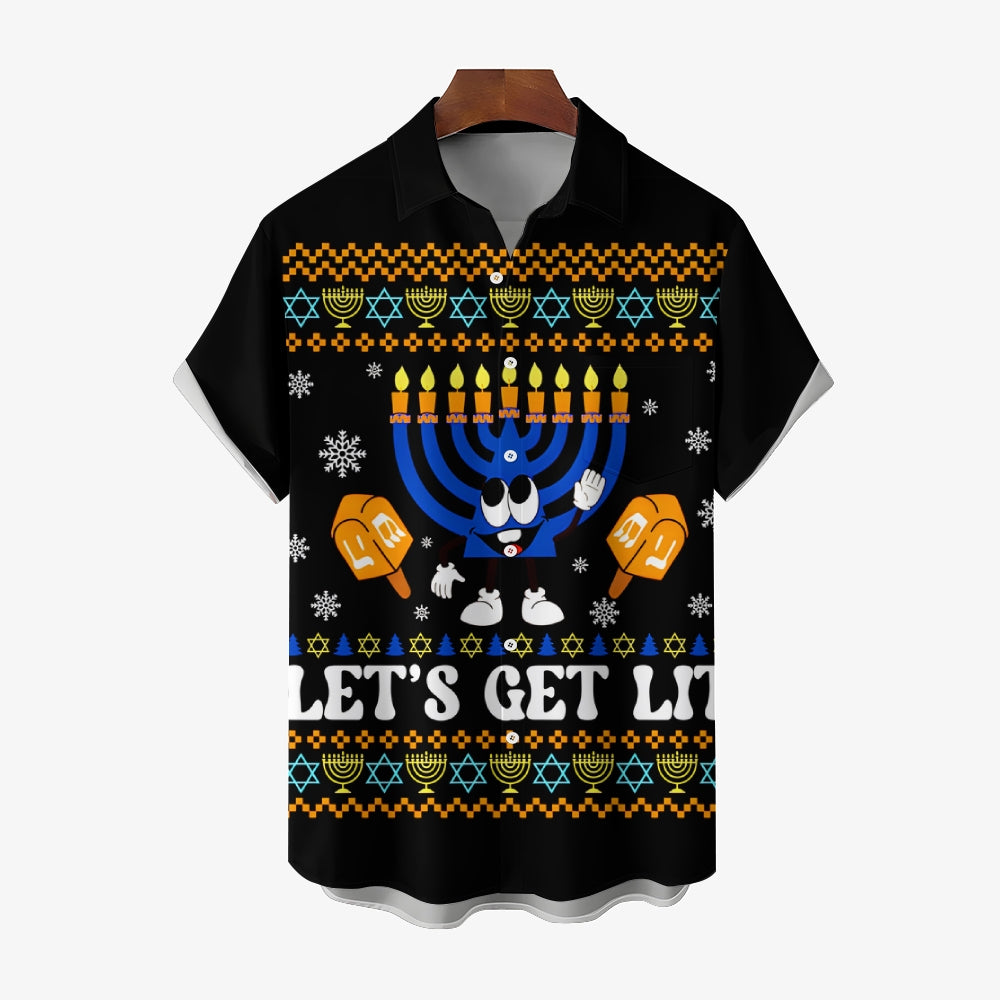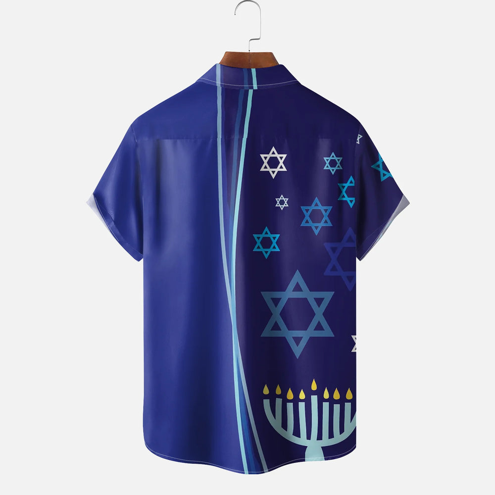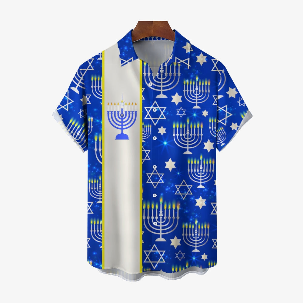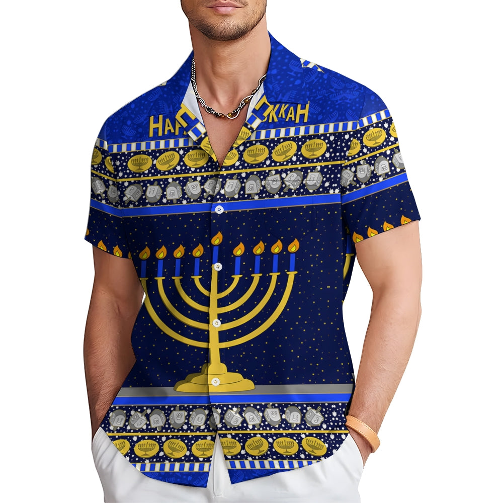 Men's Hanukkah Menorah Print Short Sleeve Shirt 2412007312