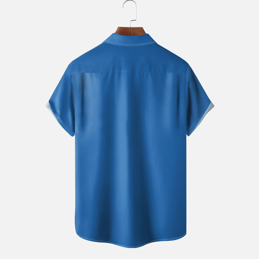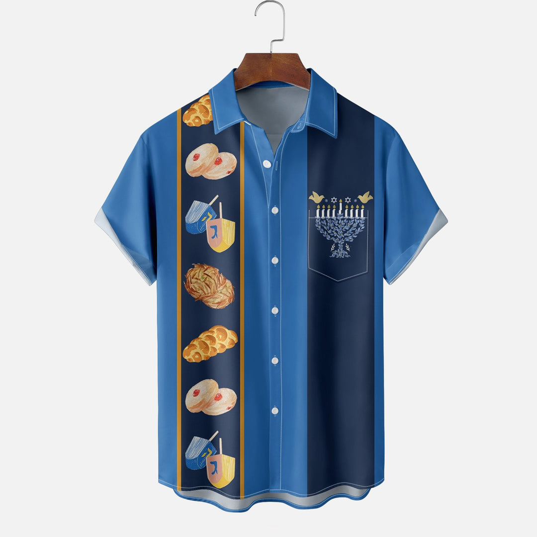 Hanukkah Candle Six-pointed Star Chest Pocket Bowling Shirt 2412009212