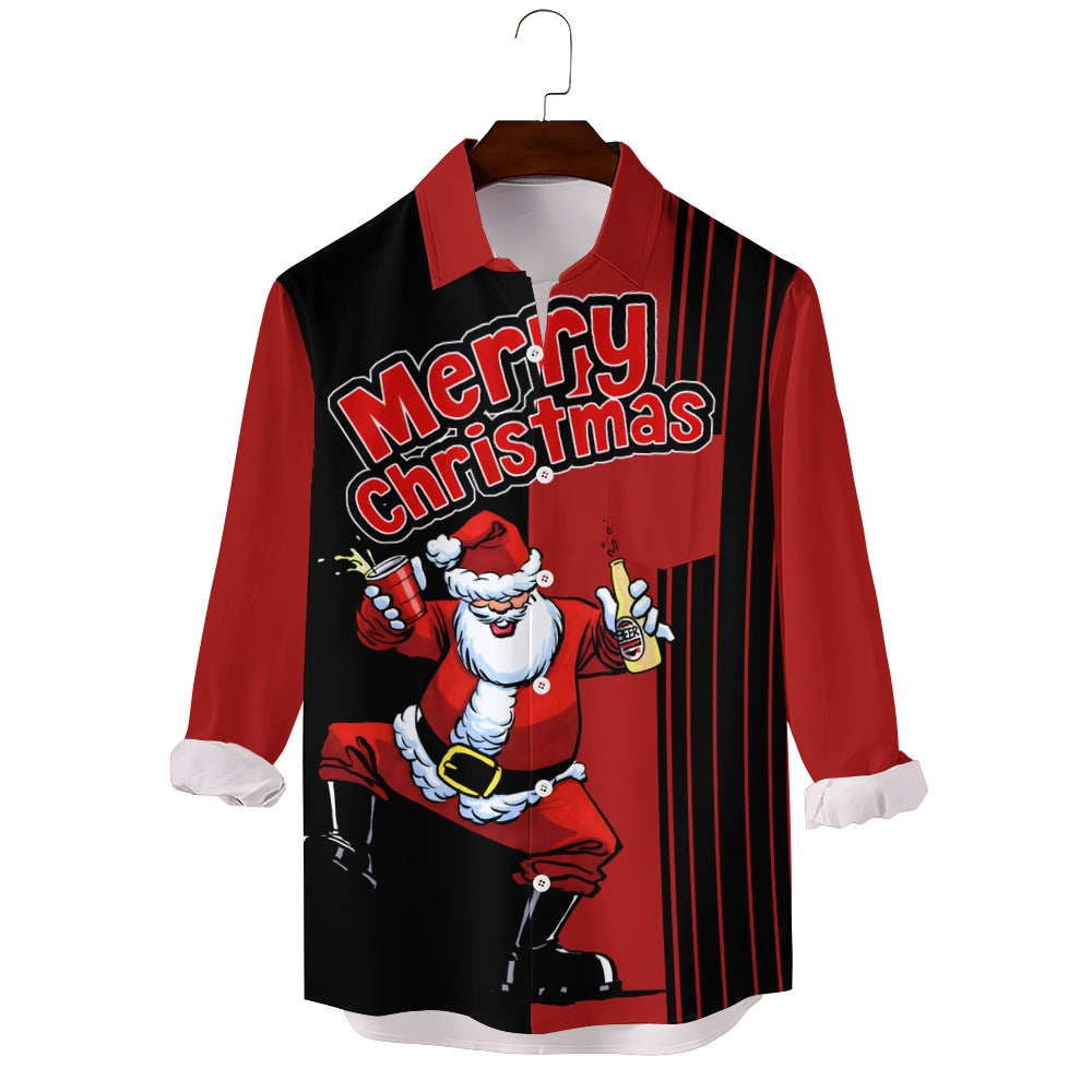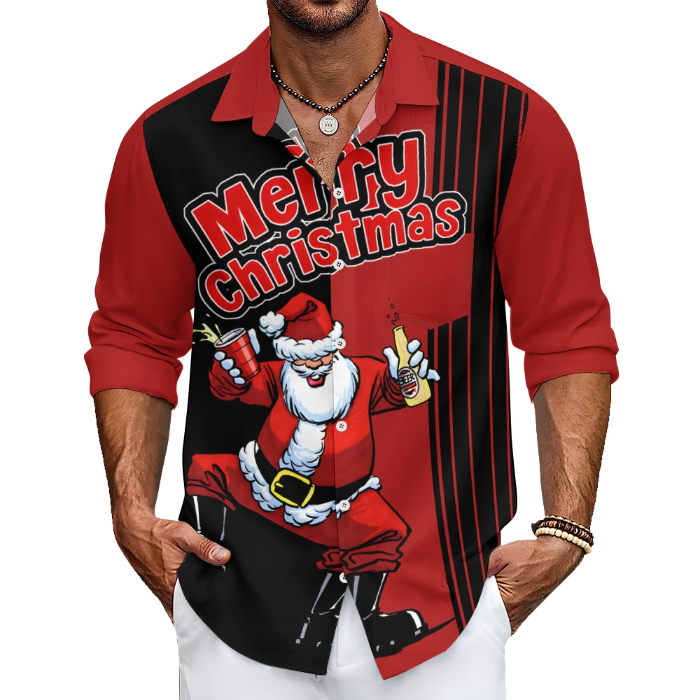 Men's Drink With Father Christmas Printed Long Sleeve Shirt
