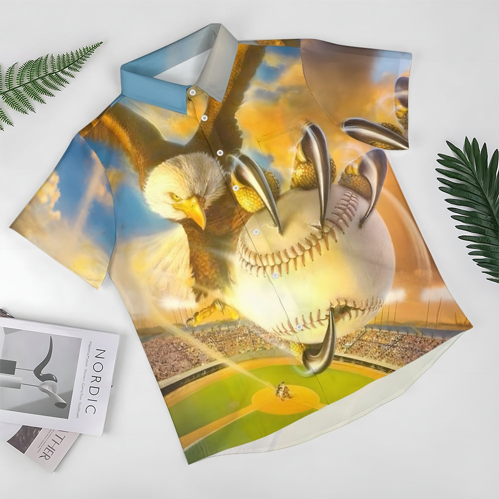 Eagle And Baseball Print Casual Short Sleeve Shirt 2412009563