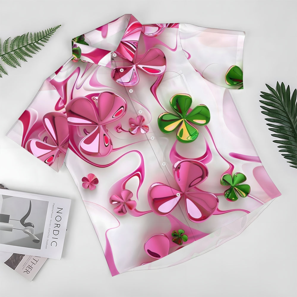 St. Patrick's Day Pink Four-Leaf Clover Short Sleeve Shirt 2412009474