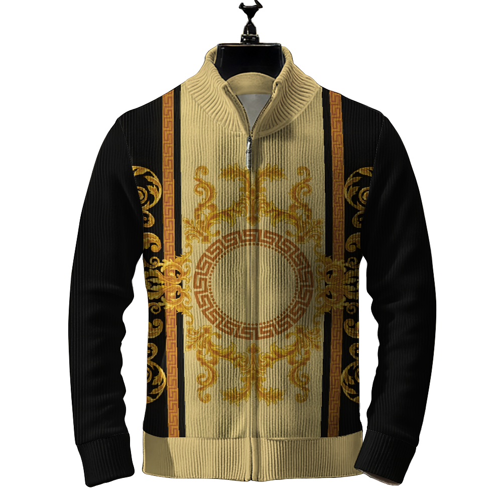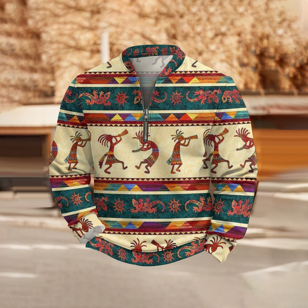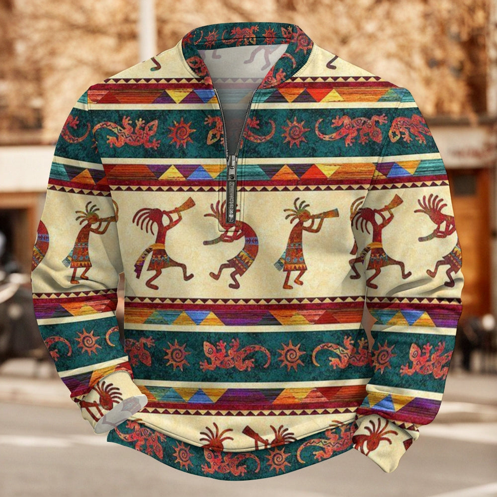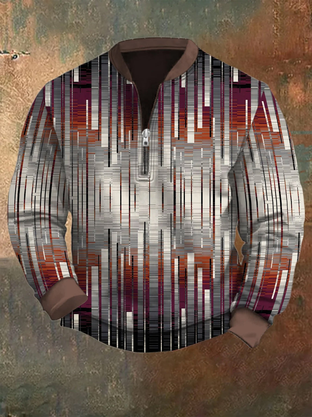 Retro Ethnic Pattern Stripes Half Zip Sweatshirt 2410006272