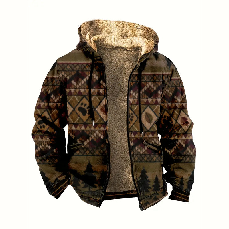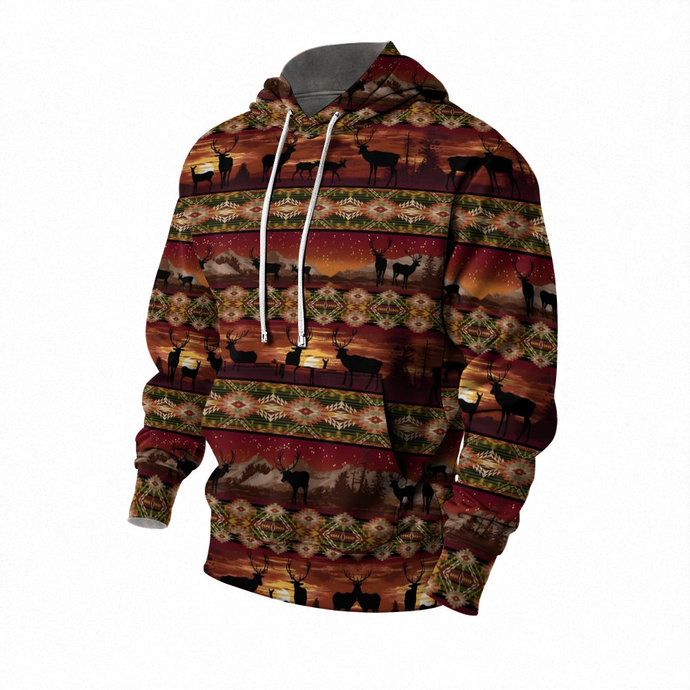 Men's Elk Shadow Stripe Printed Long Sleeve Fleece Hoodie 2409010815