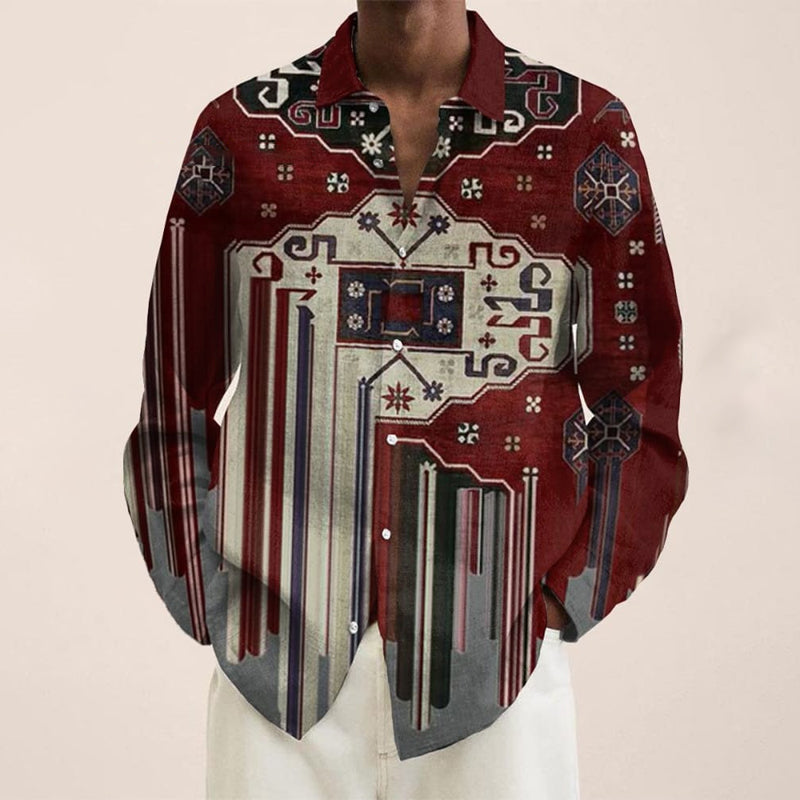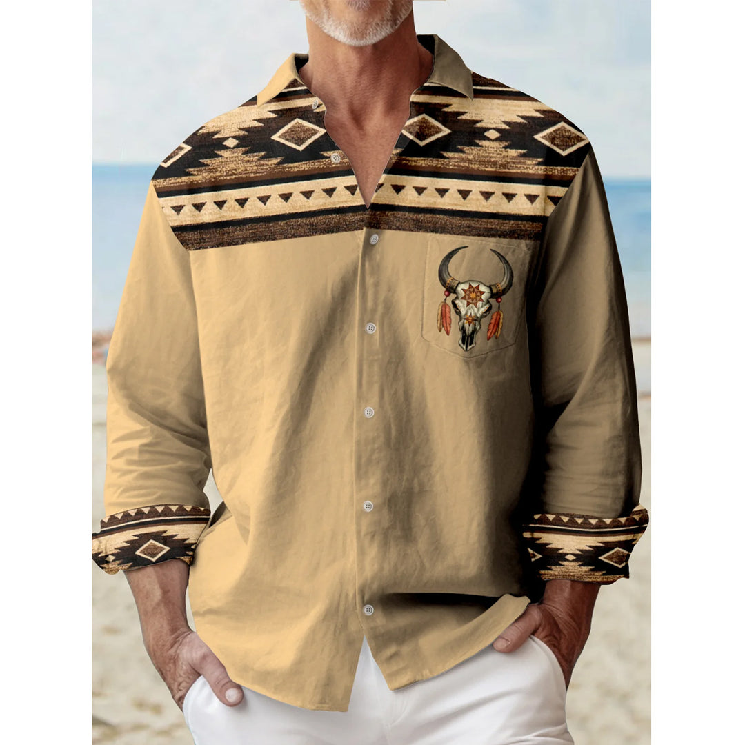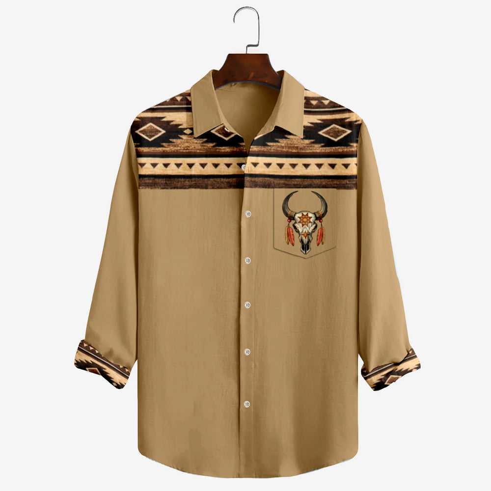 Vintage Tribal Ethnic Casual Print Shirt 2411013499