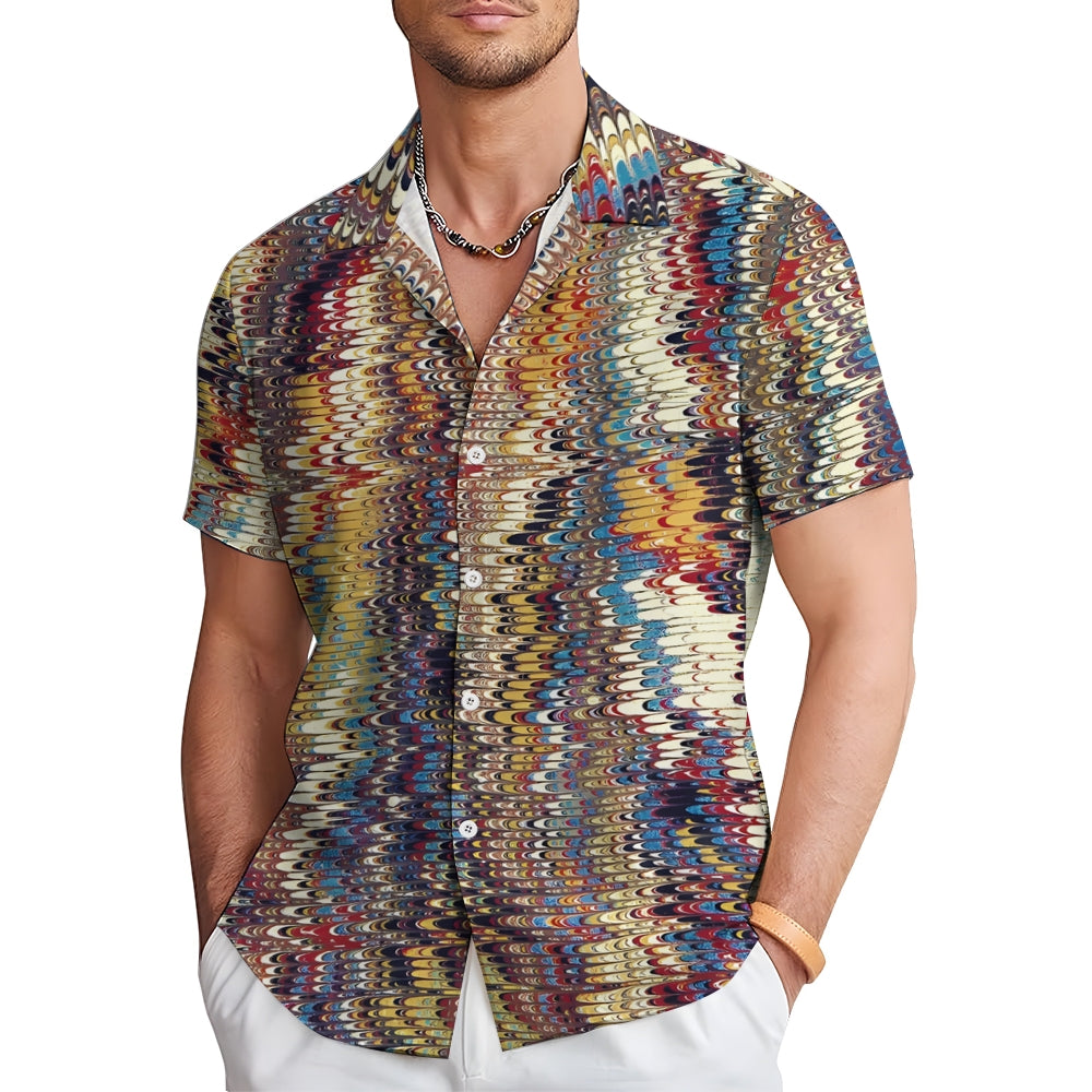 Men's Vintage Gradient Art Deco Print Short Sleeve Shirt 2412008044