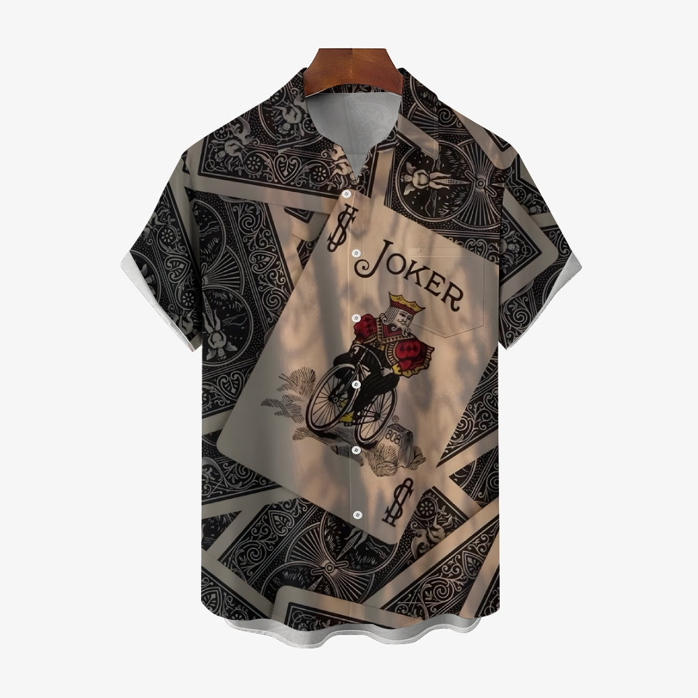 Men's Poker Pattern Chest Pocket Short Sleeve Shirt 2402000283