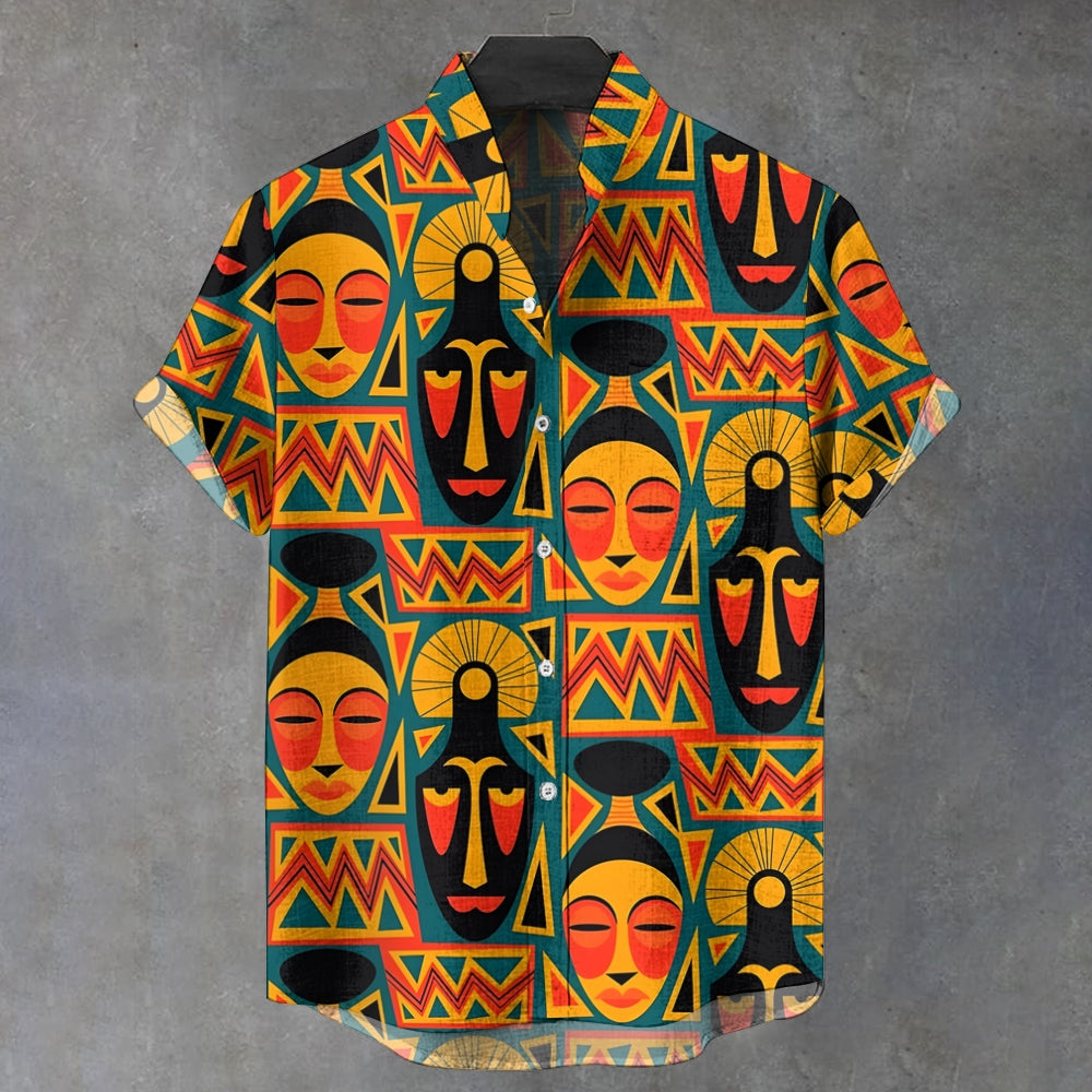 Men's Tribal Mask Casual Short Sleeve Shirt 2403000917