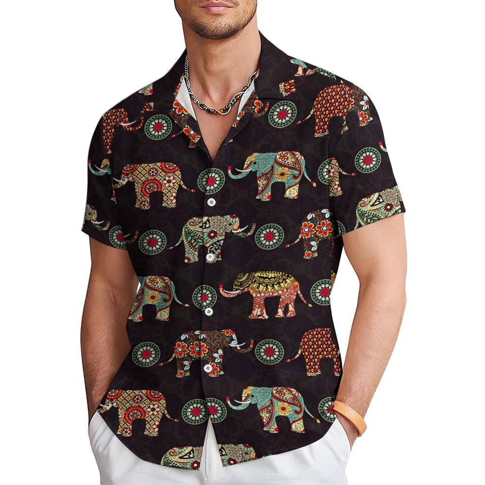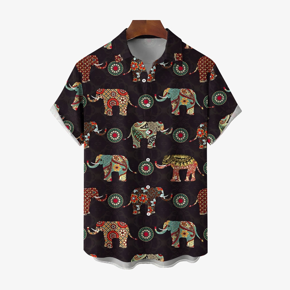 Men's Elephant Art Print Casual Short Sleeve Shirt 2404000290