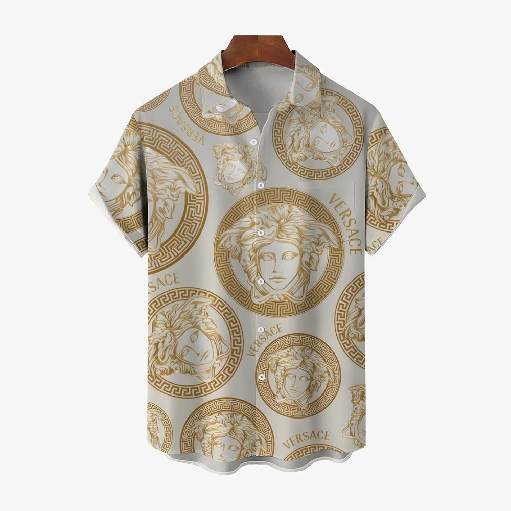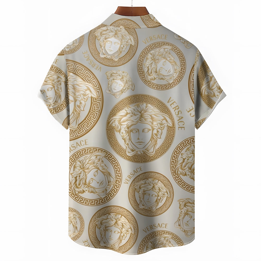 Baroque Gold Art Deco Print Casual Short Sleeve Shirt 2406000715