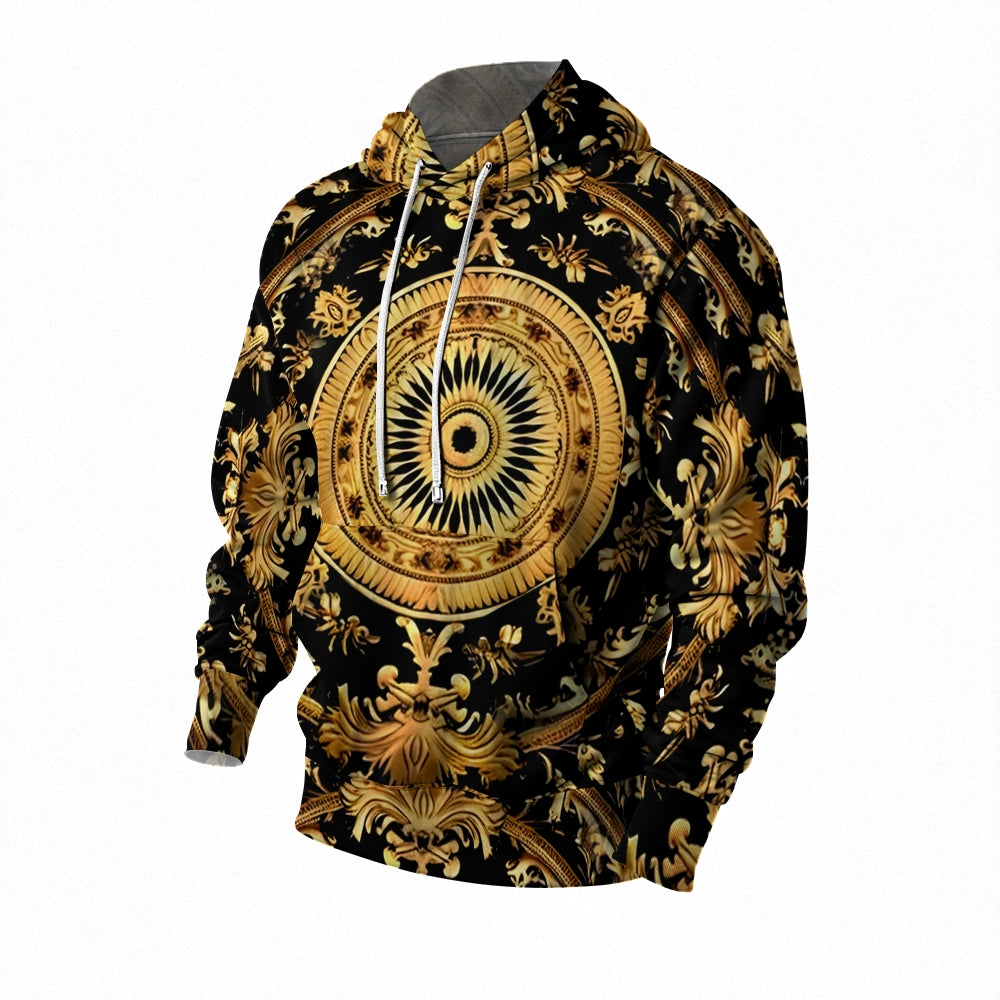 Men's Baroque Art Printed Long Sleeve Fleece Hoodie 2409011680