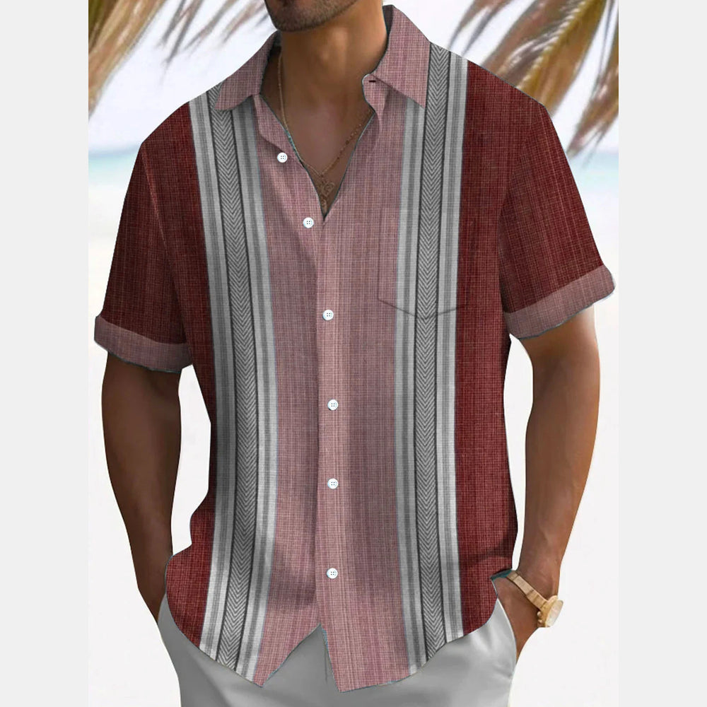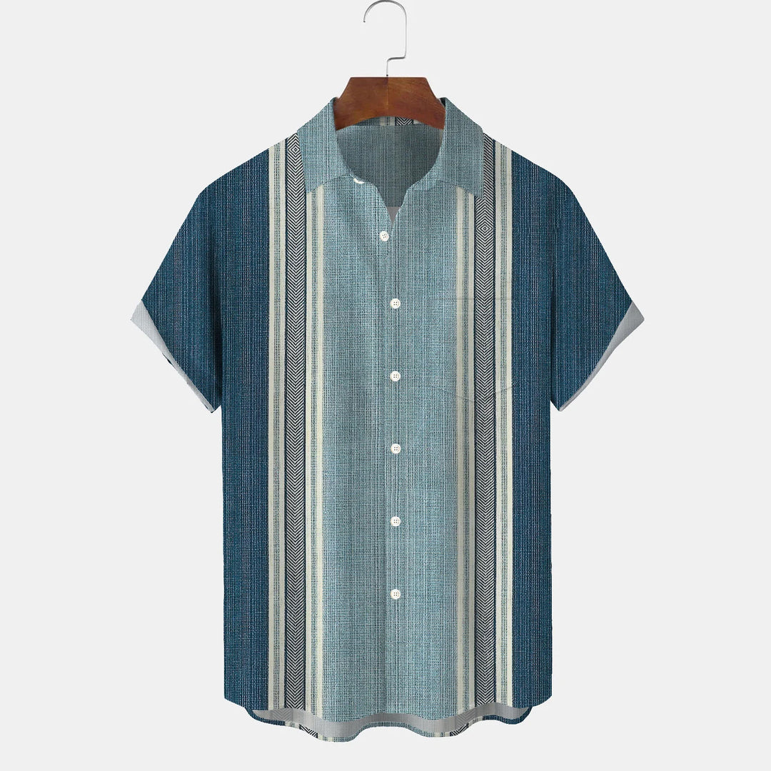 Men's Classic Geometric Striped Casual Short-Sleeved Shirt 2410005539