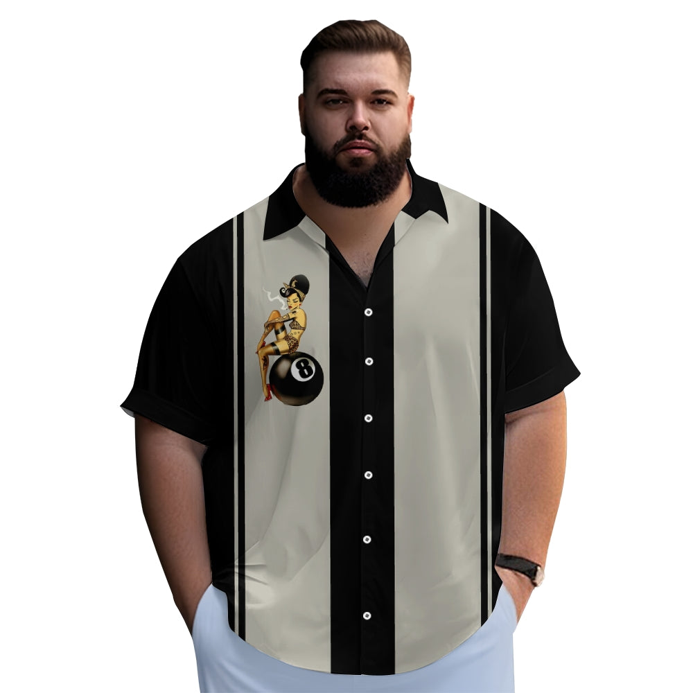 Men's Retro Bowling Print Chest Pocket Shirt Plus Size Short Sleeve Shirt 2408007907