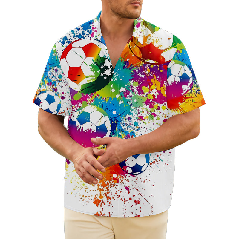 Colorful Football Print Casual Oversized Short-Sleeved Shirt 2407002248